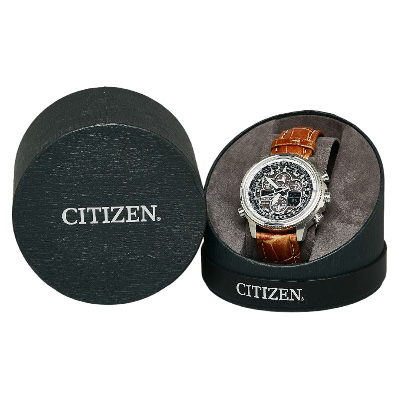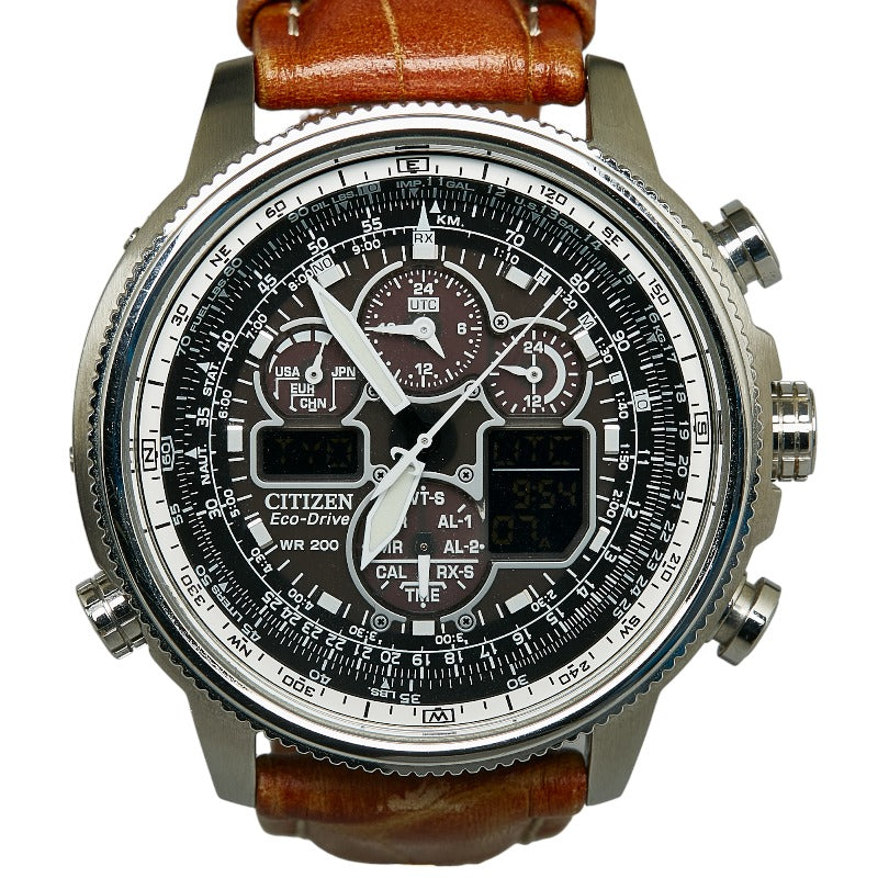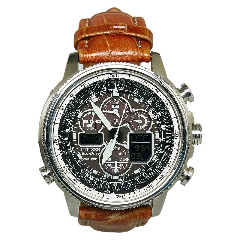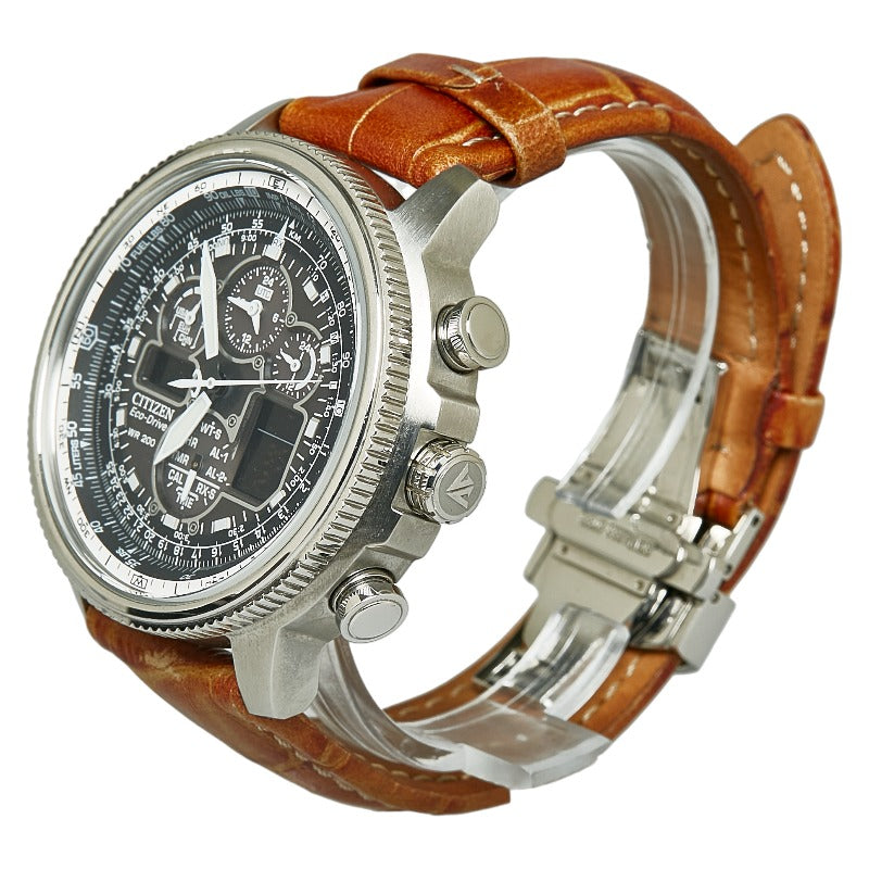 シチズン ナビホーク エコドライブ ベルト(社外品) 腕時計 U680 S092876 エコドライブ グレー文字盤 ステンレススチール レザー メンズ CITIZEN 【中古】