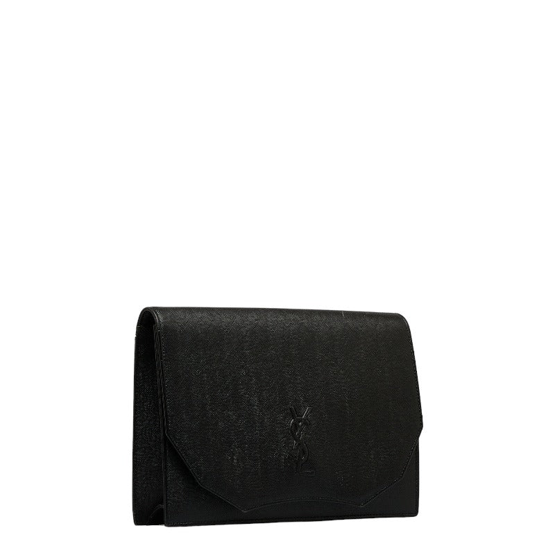 サンローラン YSLロゴ クラッチバッグ ブラック レザー メンズ SAINT LAURENT 【中古】