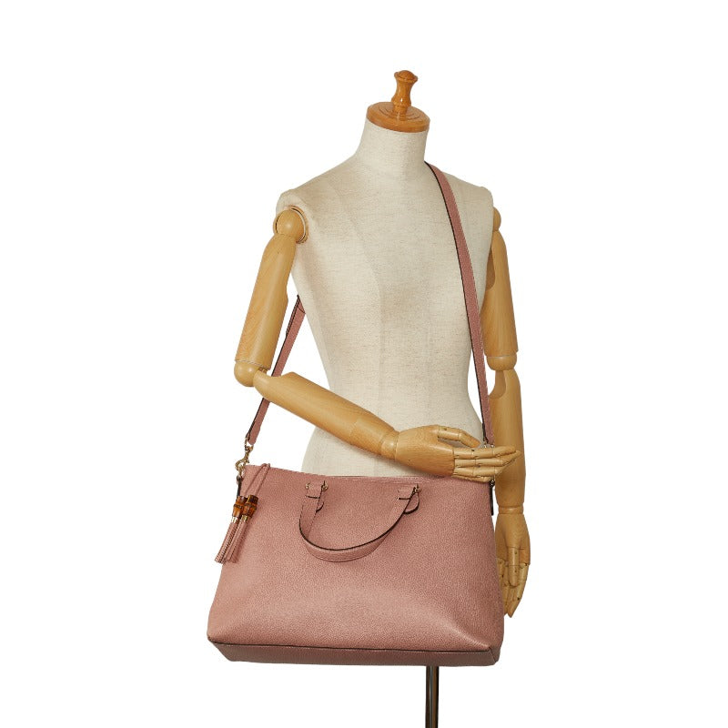 グッチ バンブー タッセル トートバッグ ショルダーバッグ 2WAY 449643 ピンク レザー レディース GUCCI 【中古】