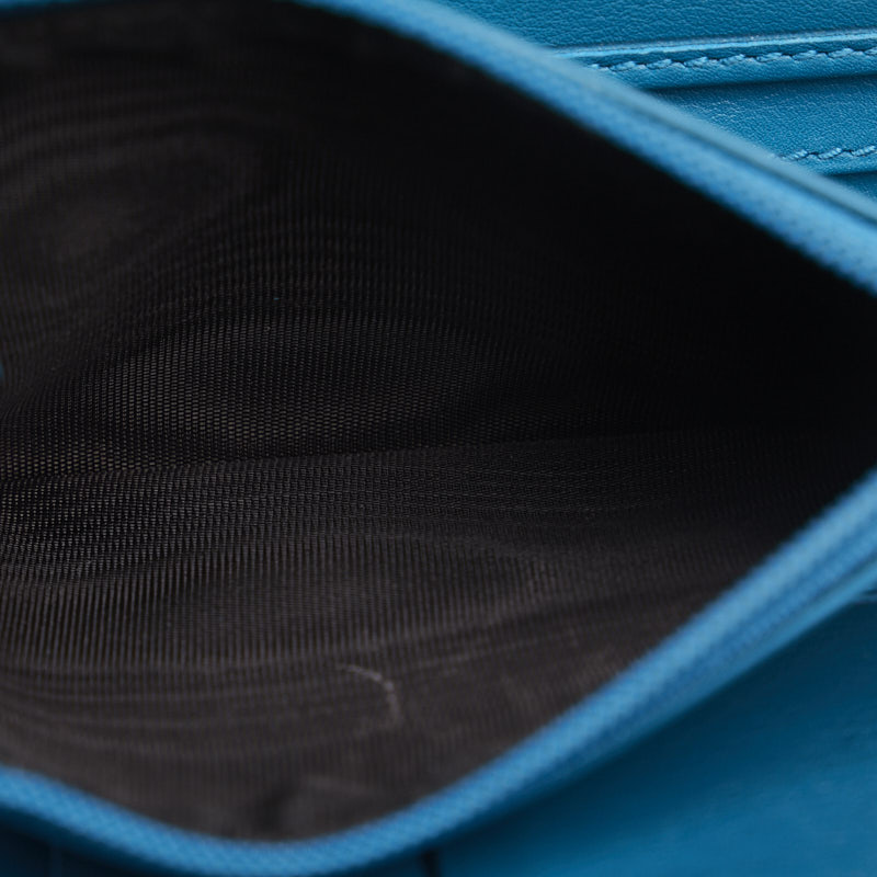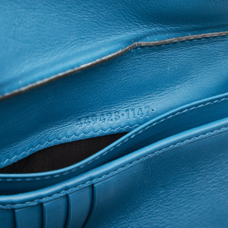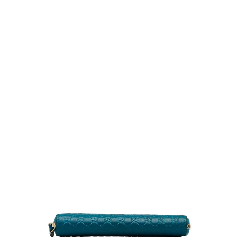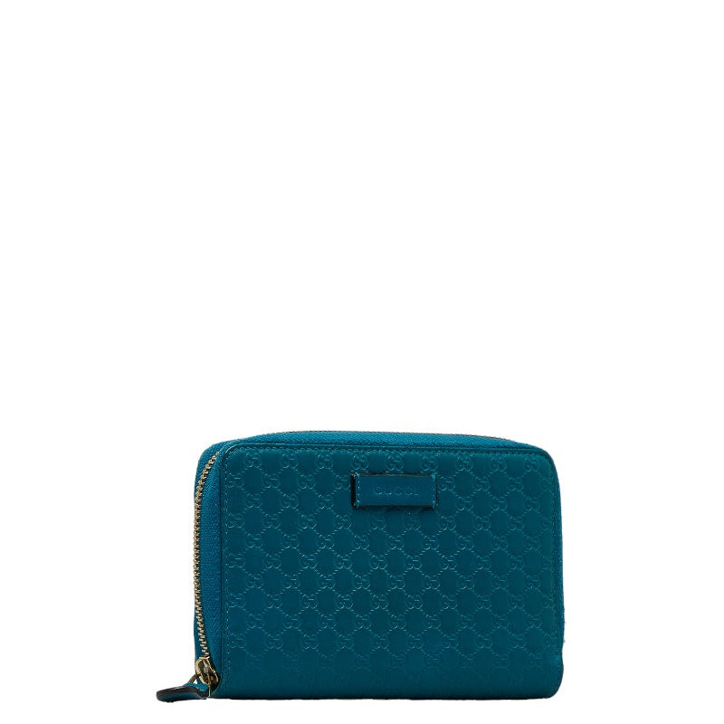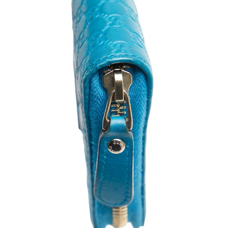グッチ マイクログッチシマ ラウンドジップ 二つ折り財布 449423 ターコイズブルー レザー レディース GUCCI 【中古】