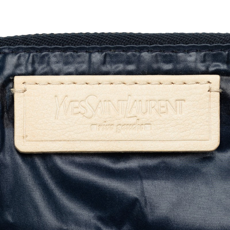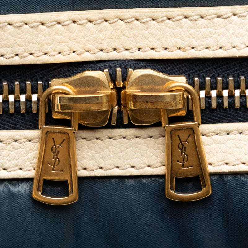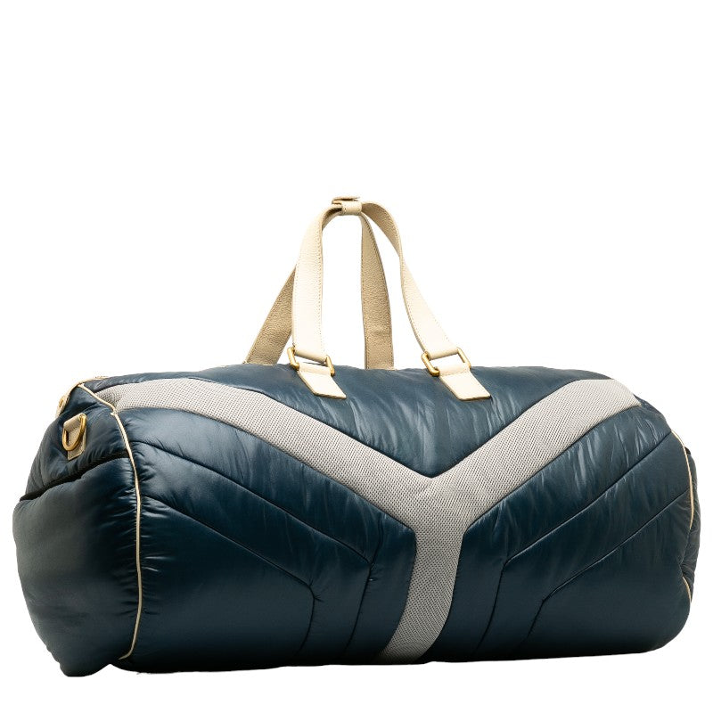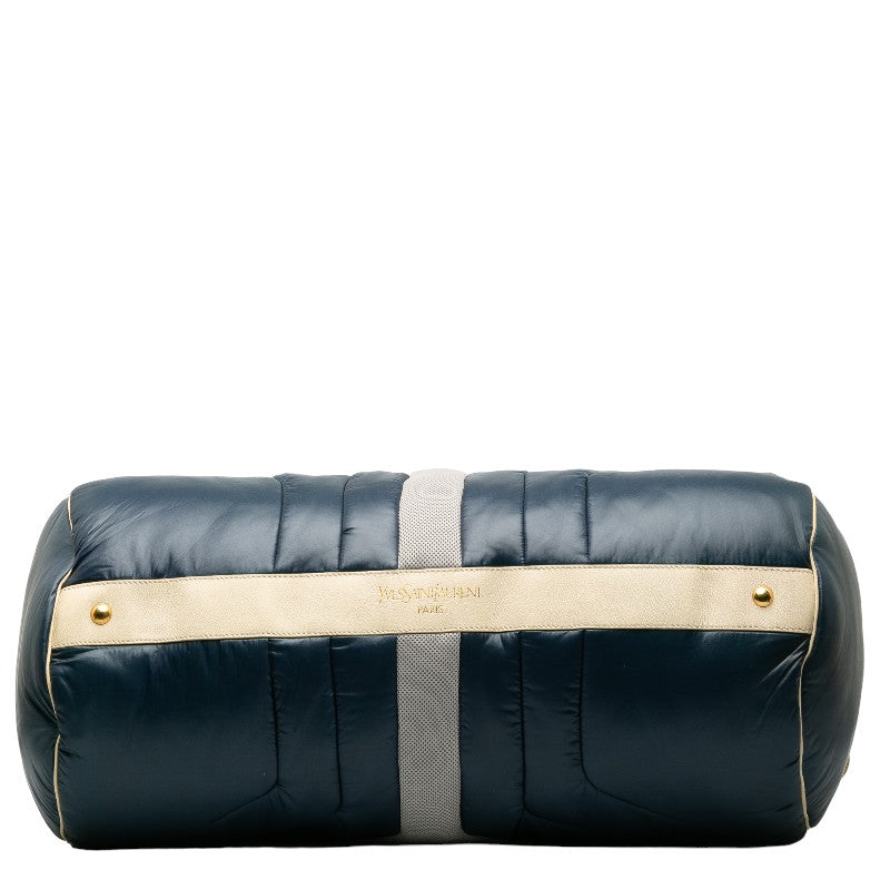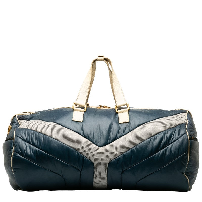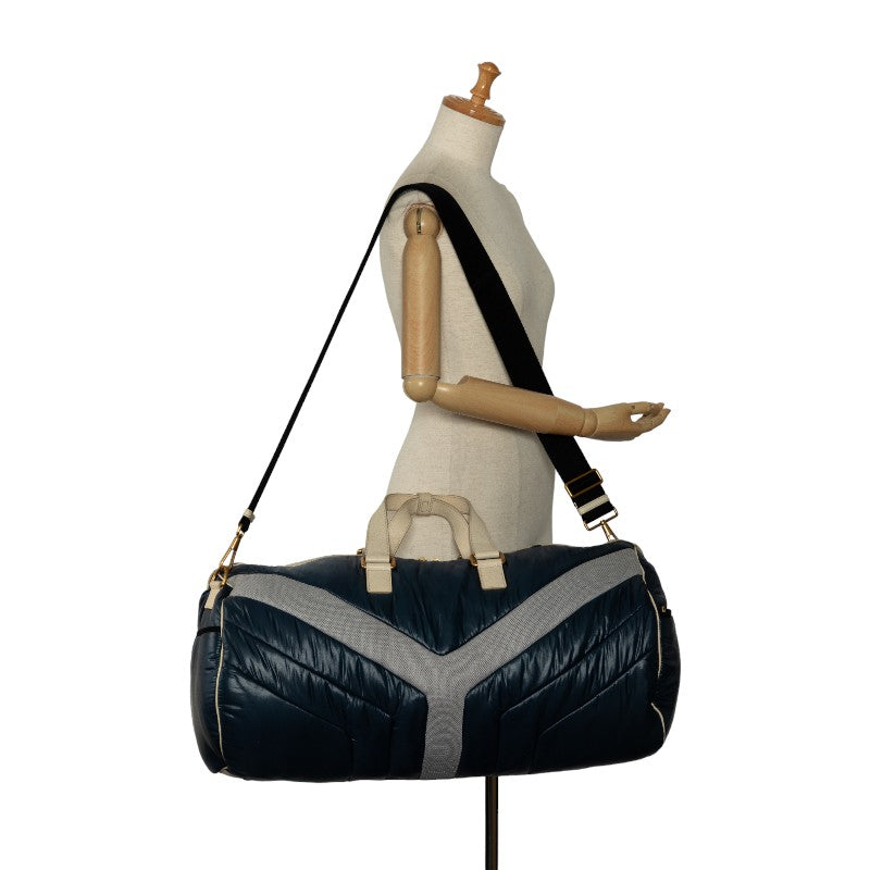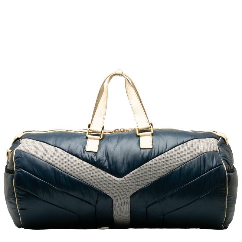 サンローラン Yライン メッシュ スポーツバッグ ハンドバッグ ボストンバッグ ショルダーバッグ 2WAY ネイビー アイボリー サテン ポリエステル レディース SAINT LAURENT 【中古】