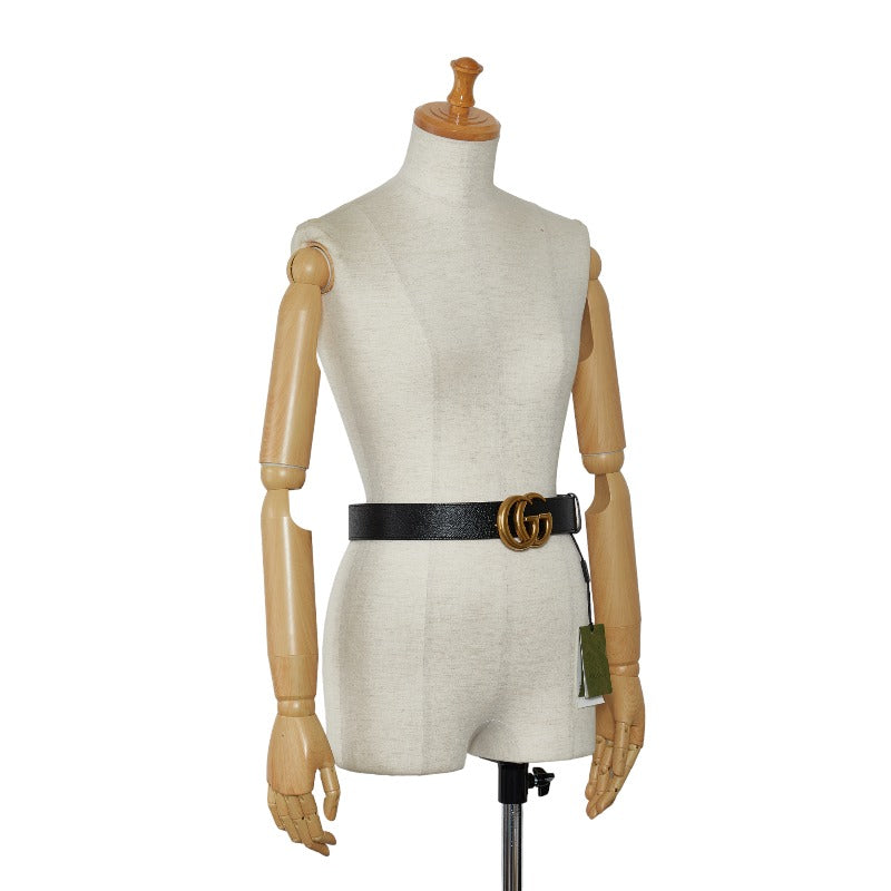 グッチ ダブルG GGマーモント ベルト 406831 ブラック ゴールド カーフレザー レディース GUCCI 【中古】