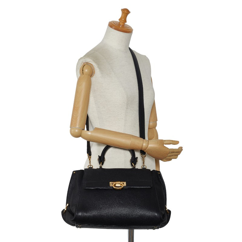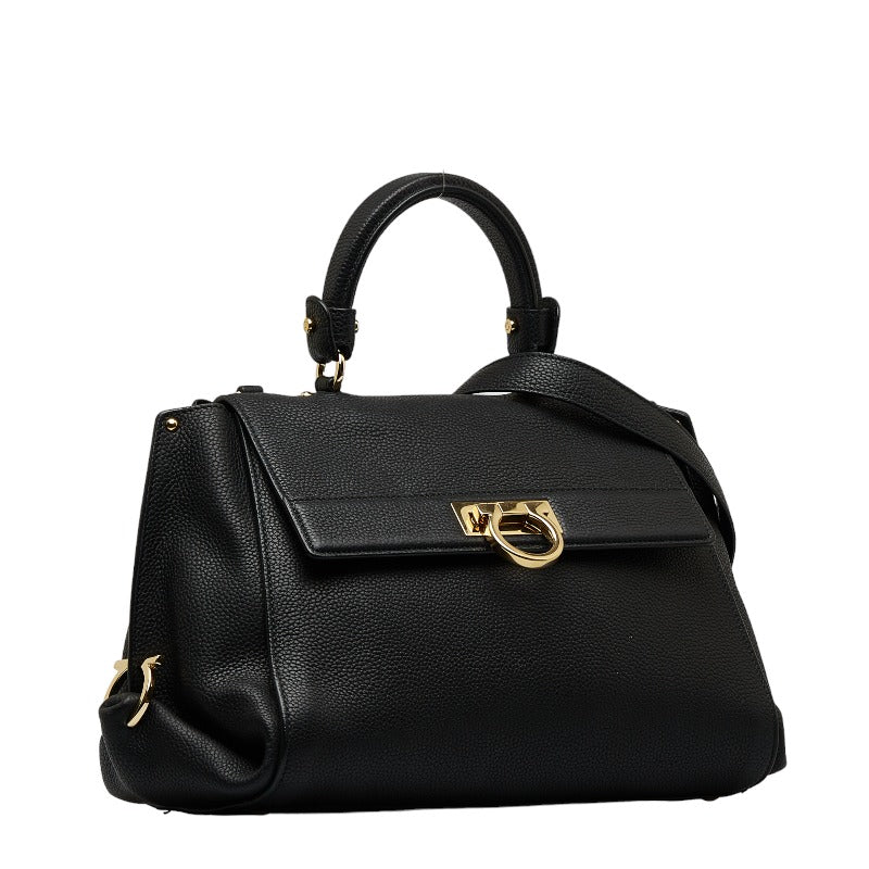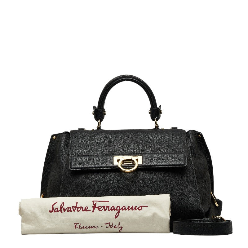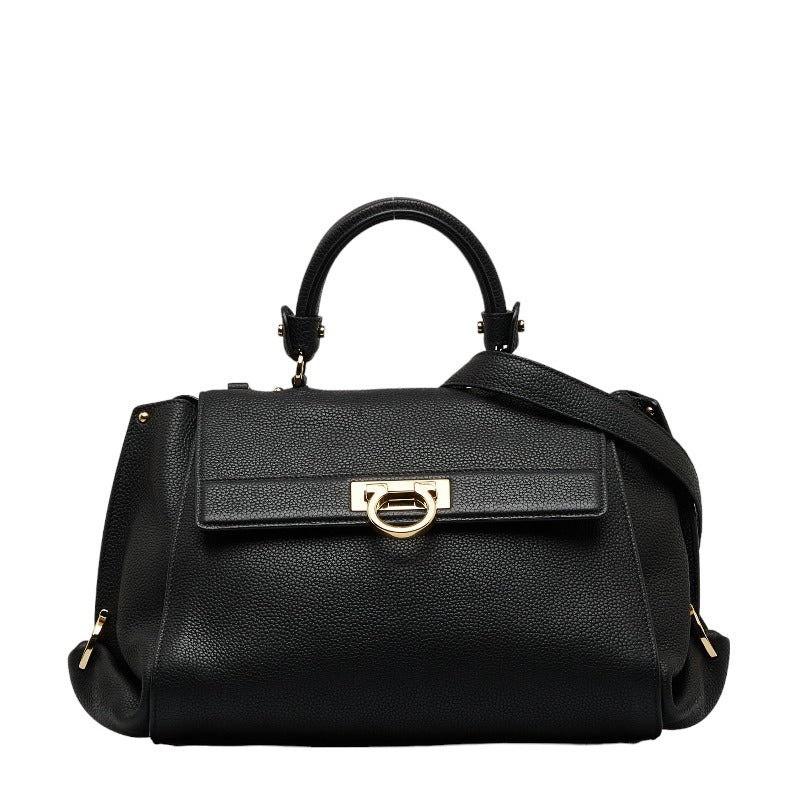 サルヴァトーレフェラガモ ソフィア スモール ガンチーニ トップハンドルバッグ ショルダーバッグ 2WAY DY-21 F606 ブラック レザー レディース Salvatore Ferragamo 【中古】