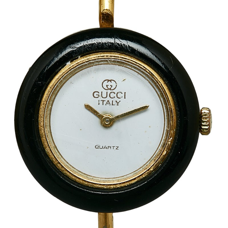 グッチ チェンジベゼル 腕時計 クオーツ ホワイト文字盤 メッキ レディース GUCCI 【中古】