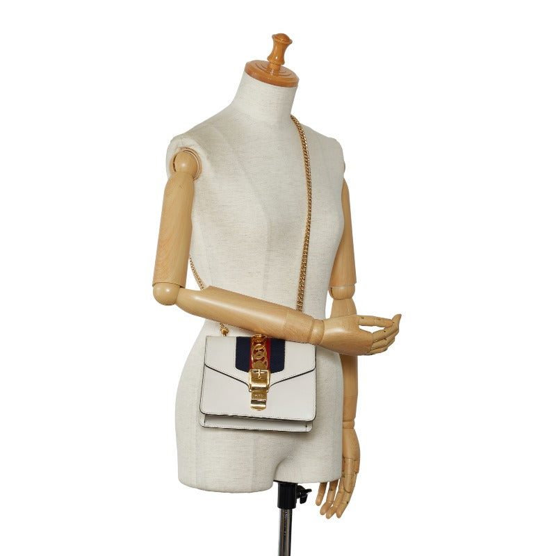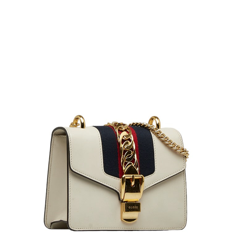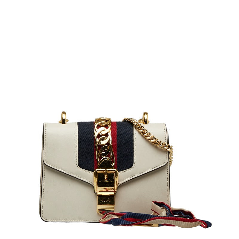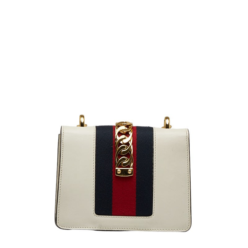 グッチ シルヴィ スモール シェリーライン 斜め掛け チェーン ショルダーバッグ 431666 ホワイト マルチカラー レザー レディース GUCCI 【中古】