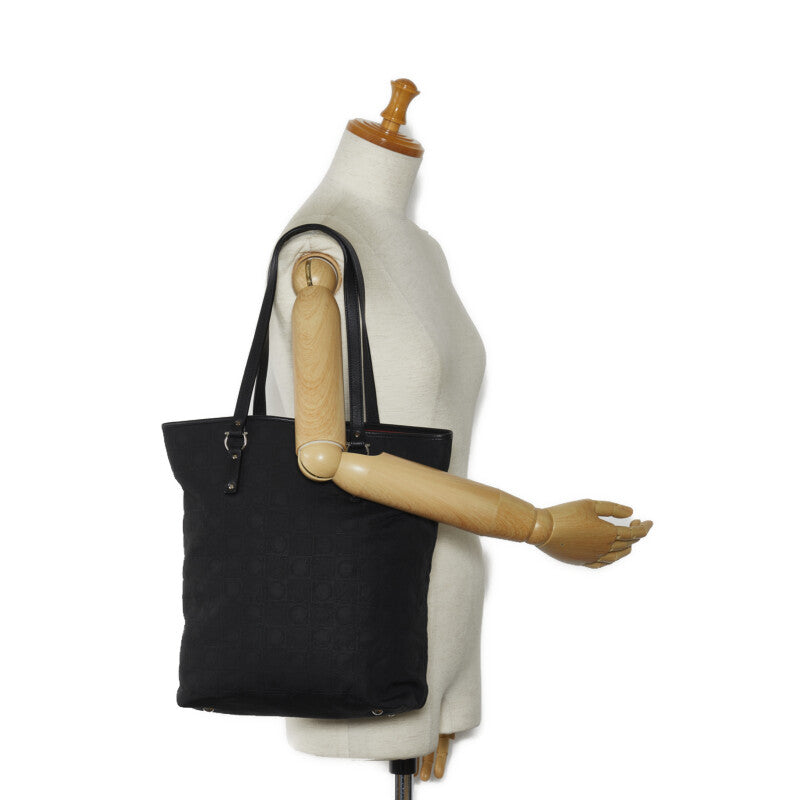 サルヴァトーレフェラガモ ガンチーニ トートバッグ AU-21 4909 ブラック キャンバス レザー レディース Salvatore Ferragamo 【中古】