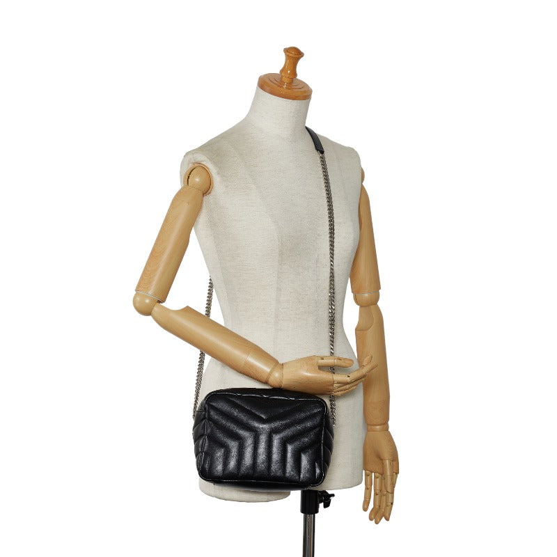 サンローラン ルル 斜め掛け チェーン ショルダーバッグ ボーリングバッグ 454317 ブラック レザー レディース SAINT LAURENT 【中古】