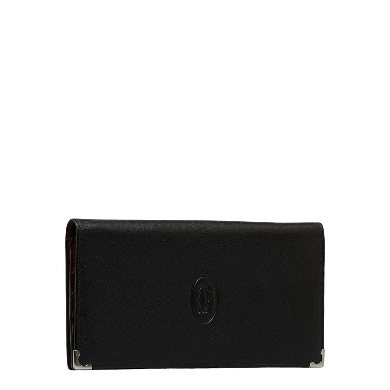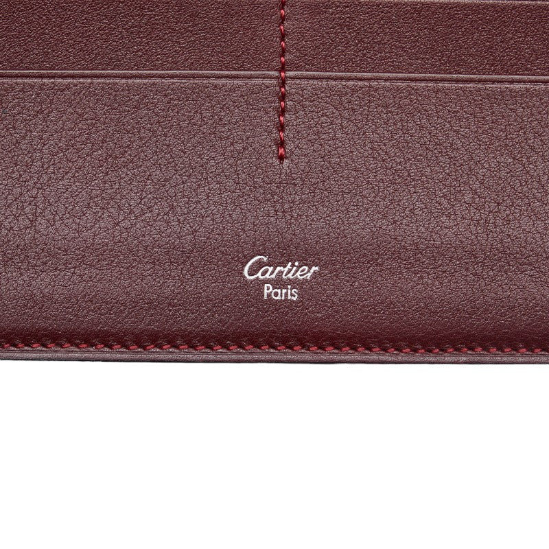 カルティエ マストライン シルバー金具 二つ折り財布 長財布 ブラック ボルドー レザー レディース CARTIER 【中古】