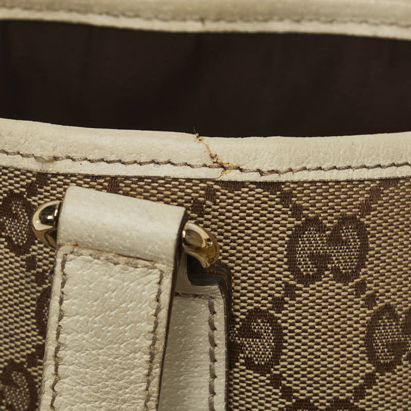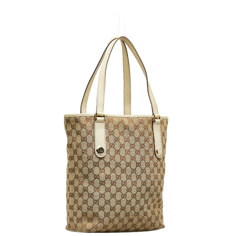 グッチ GGキャンバス ショルダーバッグ トートバッグ 153009 ベージュ ホワイト キャンバス レザー レディース GUCCI 【中古】
