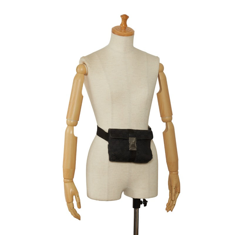 グッチ GGキャンバス ボディバッグ ウエストバッグ 131236 ブラック キャンバス レザー レディース GUCCI 【中古】