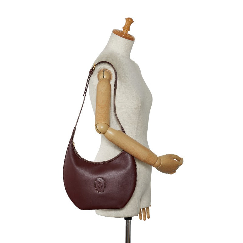 カルティエ マストライン ハンドバッグ ワンショルダーバッグ ワインレッド レザー レディース CARTIER 【中古】