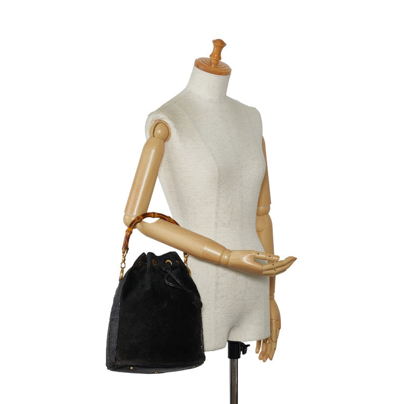 グッチ バンブー ハンドバッグ 001 2865 ブラック スウェード レザー レディース GUCCI 【中古】