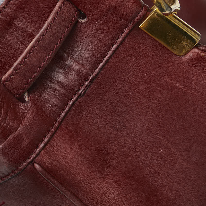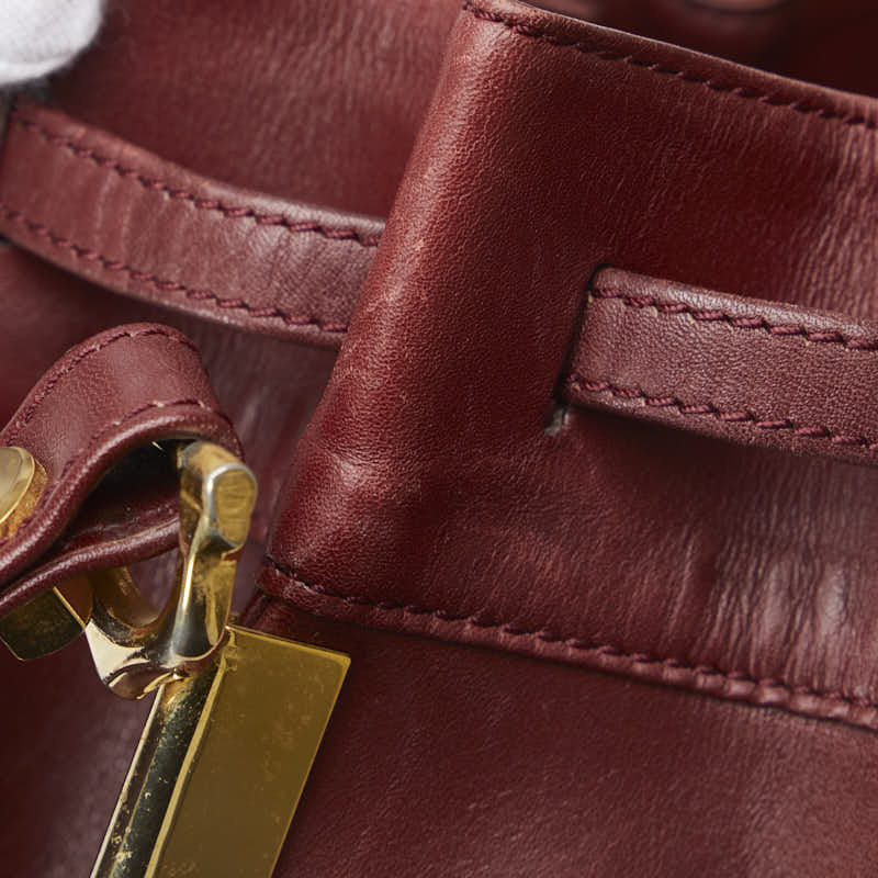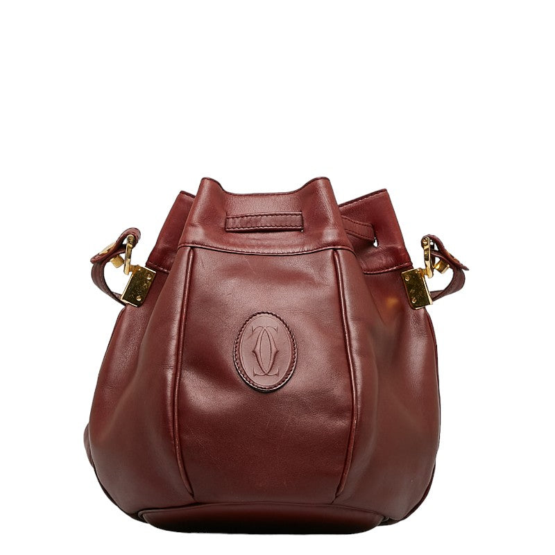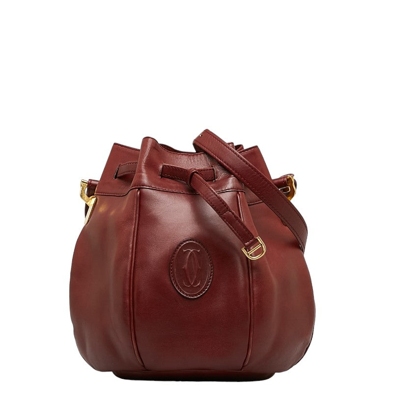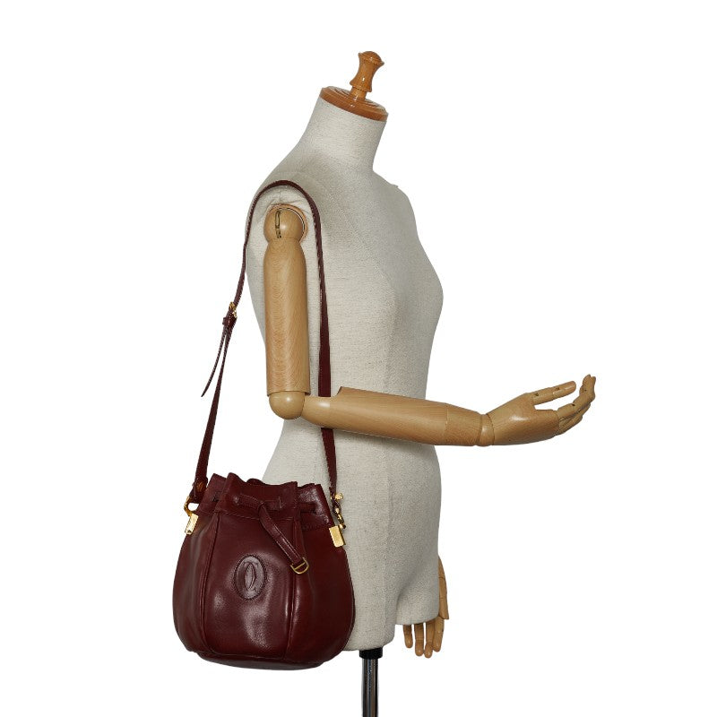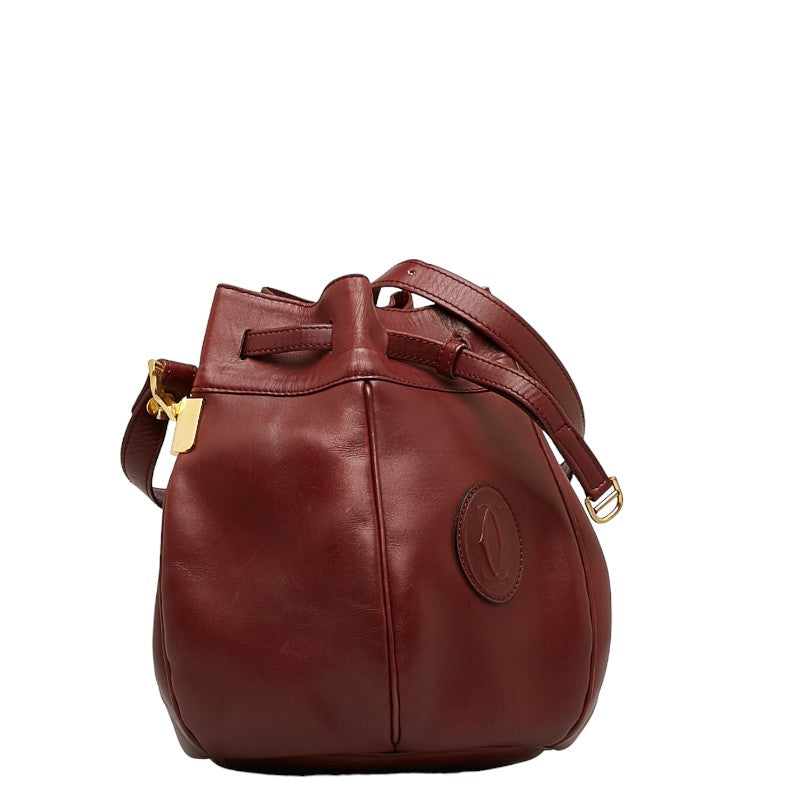 カルティエ マストライン 巾着 ゴールド金具 ショルダーバッグ ボルドー ワインレッド レザー レディース CARTIER 【中古】