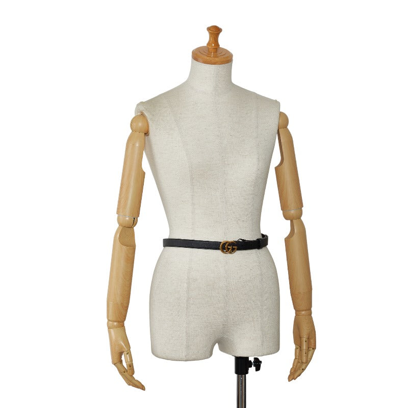 グッチ ダブルGバックル ベルト 409417 ブラック ゴールド レザー レディース GUCCI 【中古】
