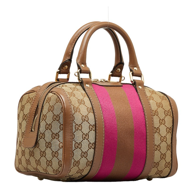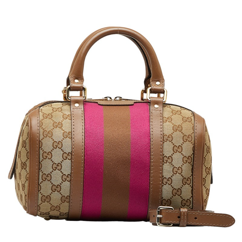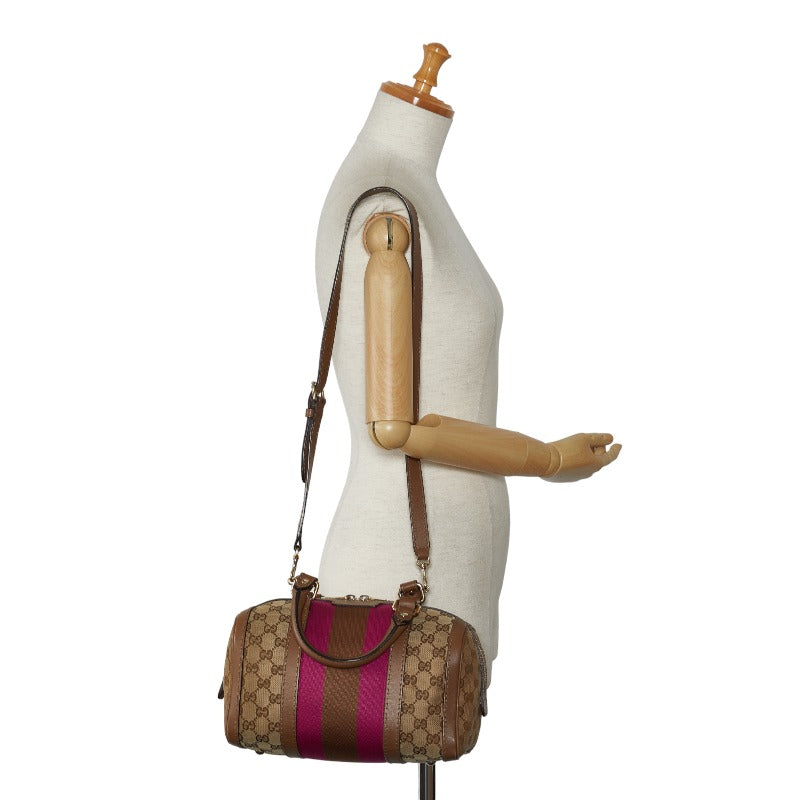 グッチ GGキャンバス シェリーライン ミニボストンバッグ ショルダーバッグ 2WAY 269876 ベージュ マルチカラー キャンバス レザー レディース GUCCI 【中古】