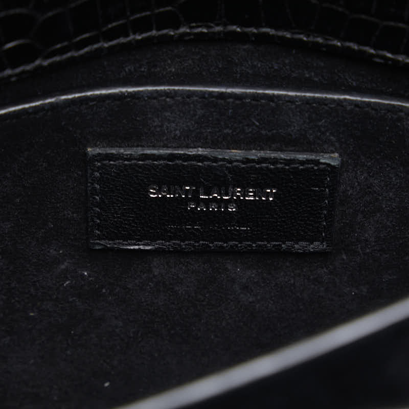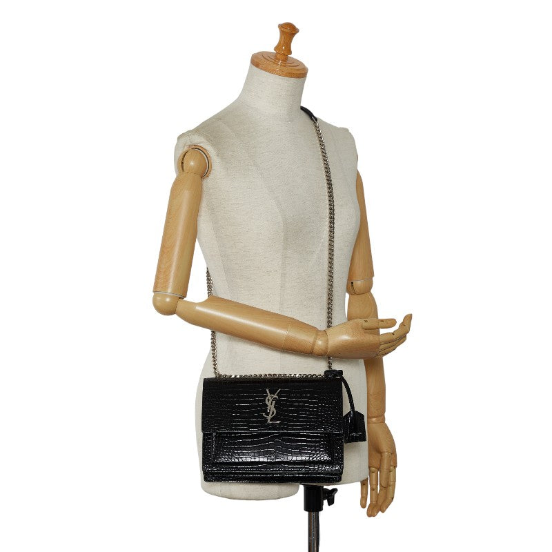 サンローラン クロコ型押し サンセット ミディアム チェーン ショルダーバッグ 442906 ブラック レザー レディース SAINT LAURENT 【中古】