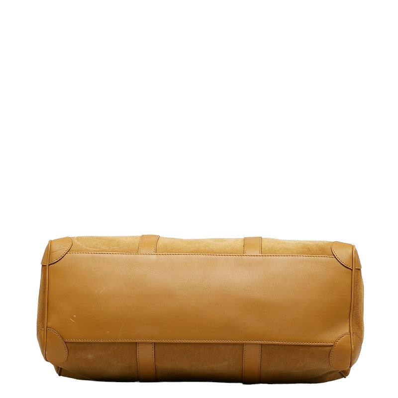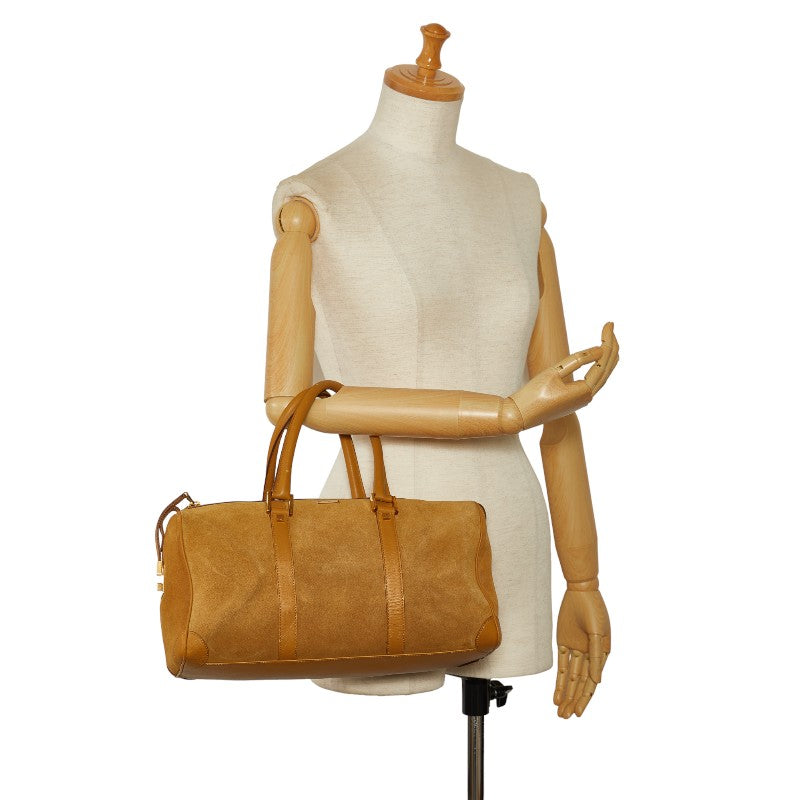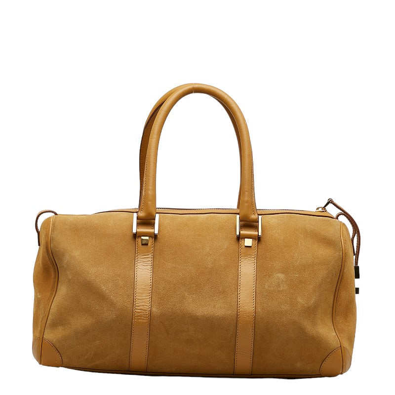 グッチ ロゴプレート ゴールド金具 ハンドバッグ ボストンバッグ 000 0846 ベージュ レザー スエード レディース GUCCI 【中古】