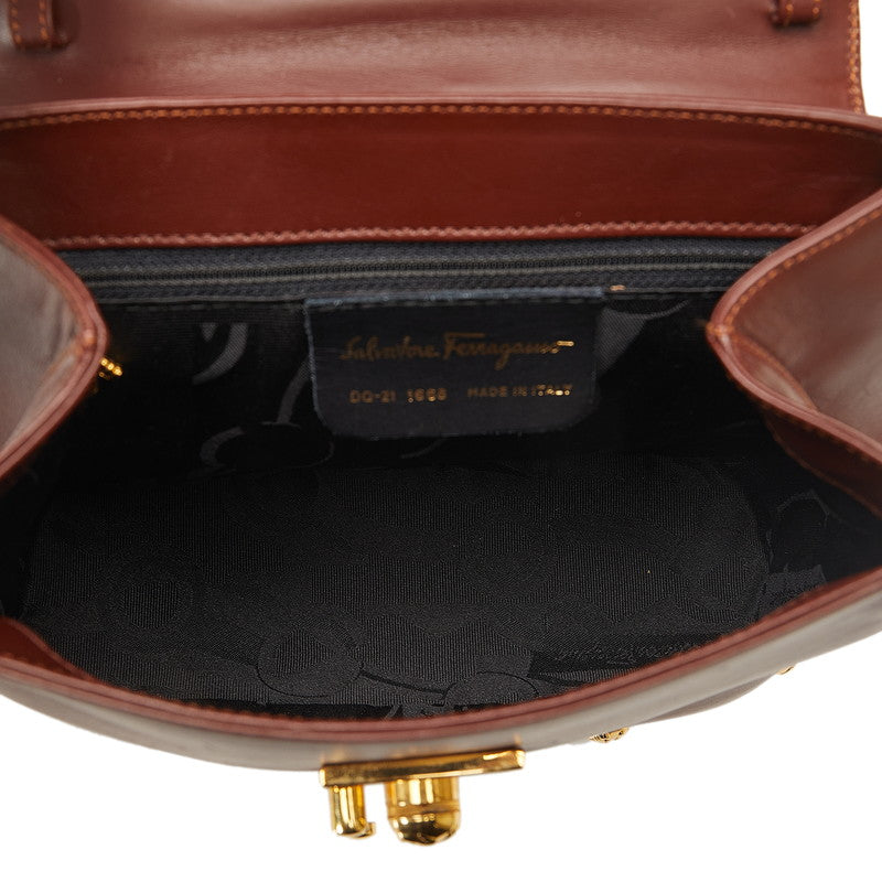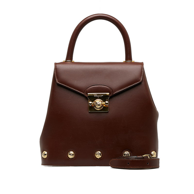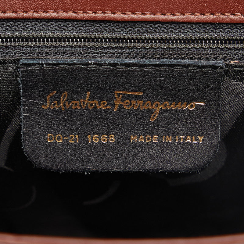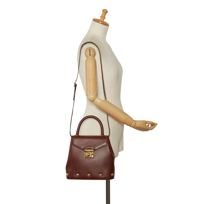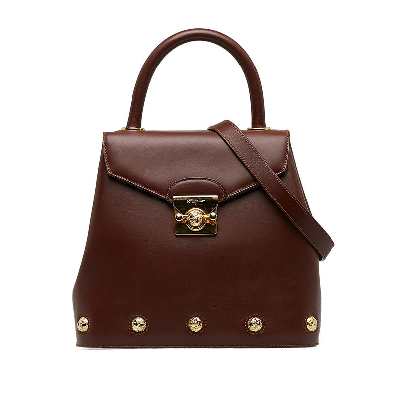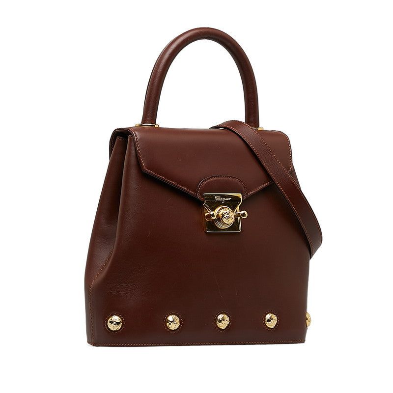 サルヴァトーレフェラガモ ヒールモチーフ ボタン ゴールド金具 ハンドバッグ ショルダーバッグ 2WAY DQ-21 1668 ボルドー ワインレッド レザー レディース Salvatore Ferragamo 【中古】