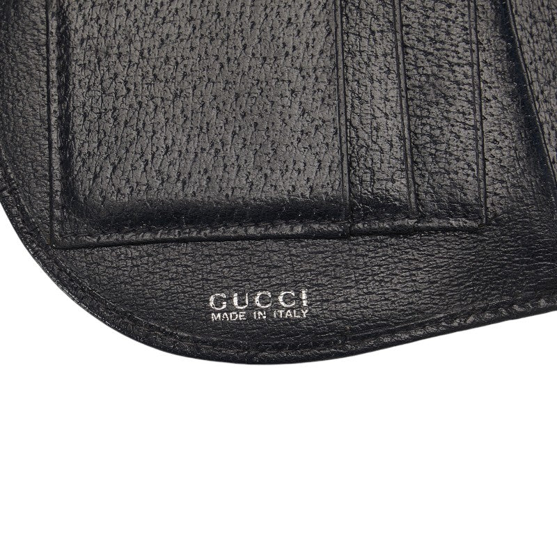 グッチ 二つ折り財布 ネイビー レザー レディース GUCCI 【中古】