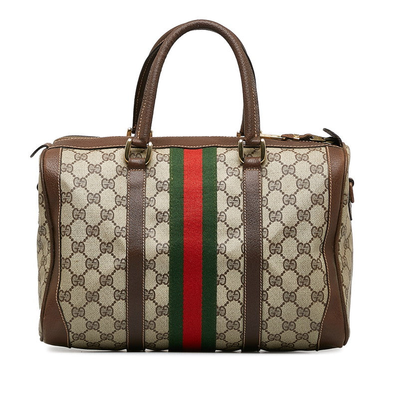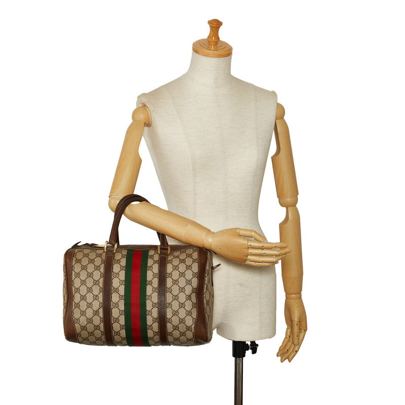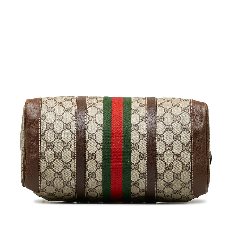 グッチ GGスプリーム シェリーライン ミニボストンバッグ ハンドバッグ ベージュ ブラウン PVC レザー レディース GUCCI 【中古】