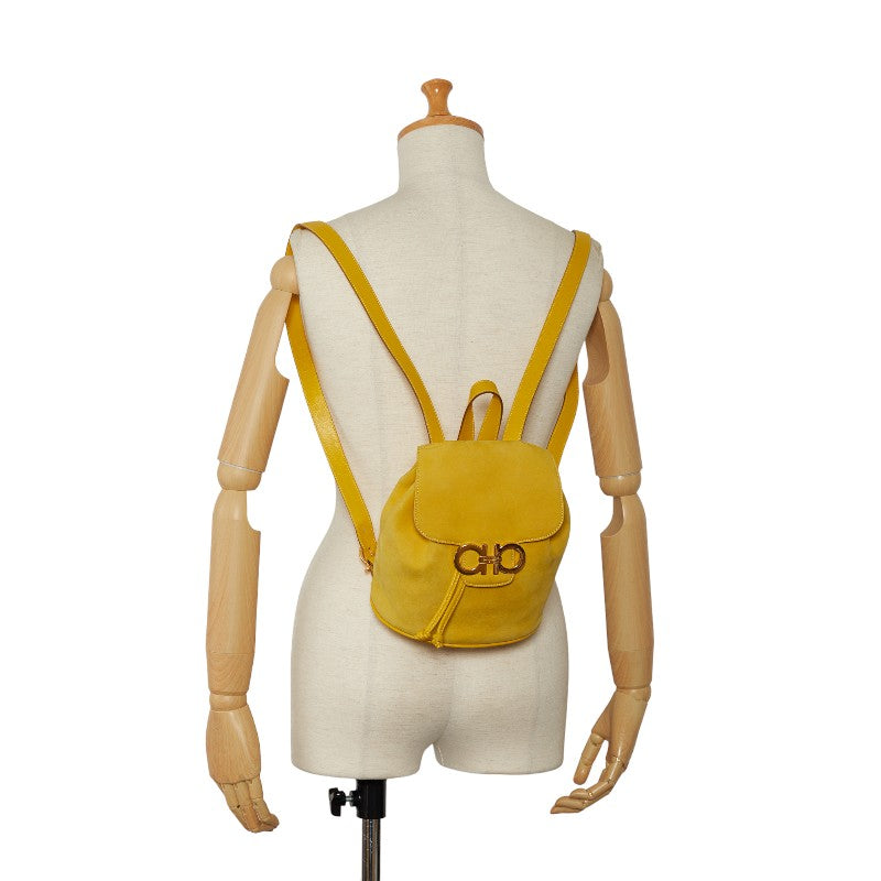 サルヴァトーレフェラガモ ガンチーニ リュック バックパック DJ-21 6147 イエロー スウェード レザー レディース Salvatore Ferragamo 【中古】