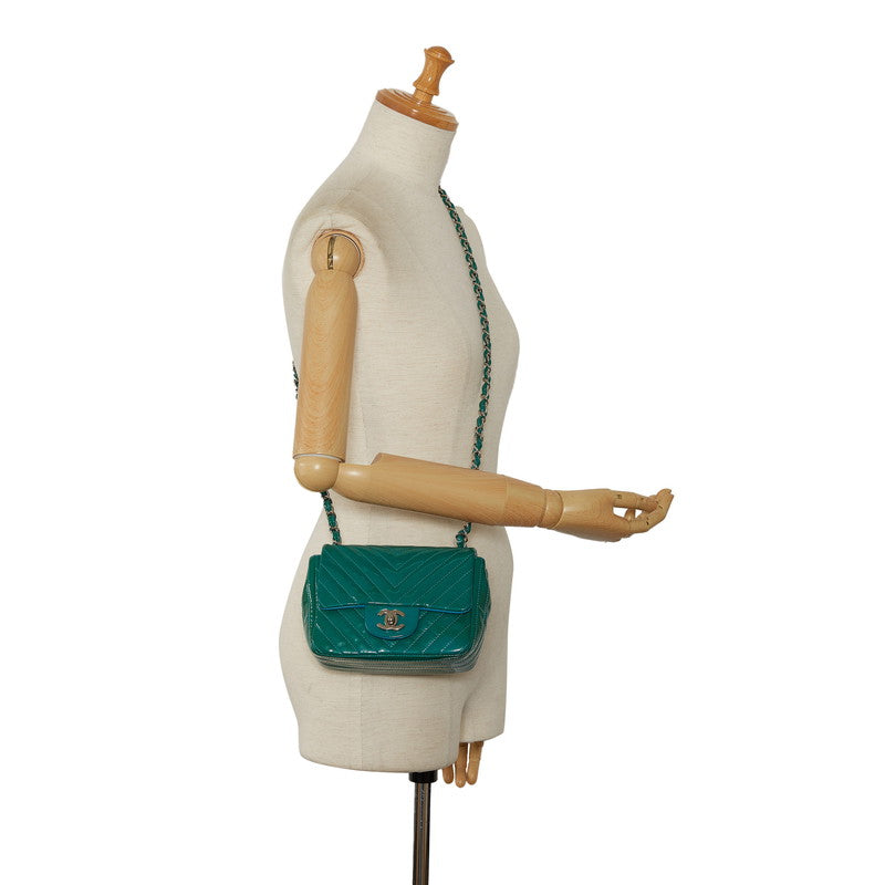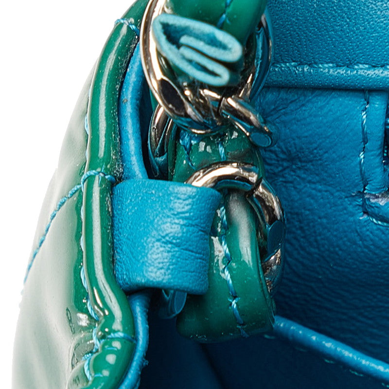 シャネル ココマーク Vステッチ チェーン ショルダーバッグ エメラルドグリーン パテントレザー レディース CHANEL 【中古】