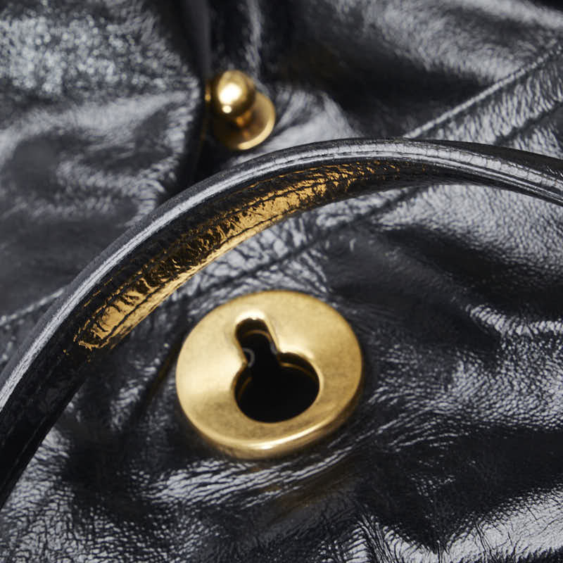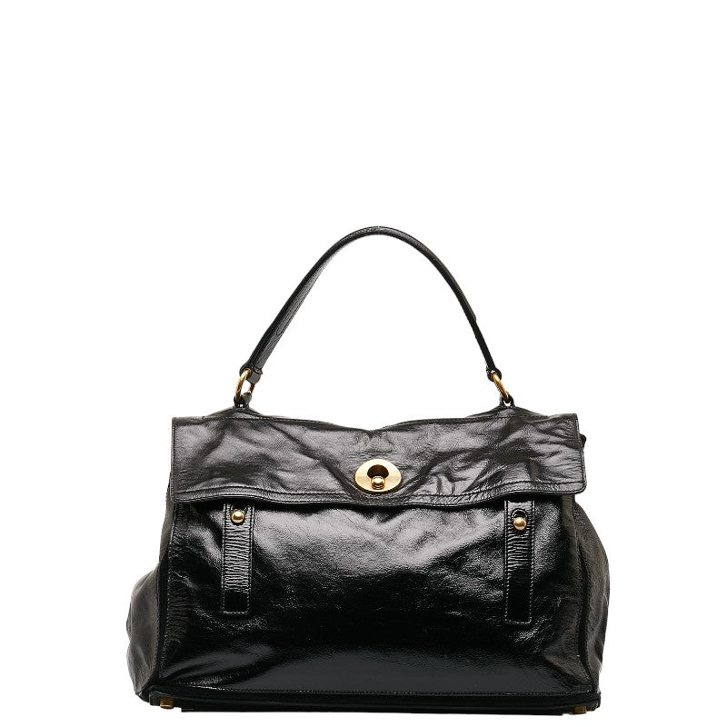 サンローラン ミューズトゥ ハンドバッグ 197148 ブラック ゴールド エナメル レディース SAINT LAURENT 【中古】