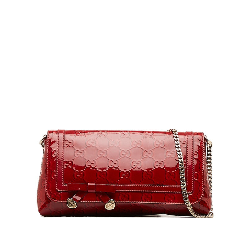 グッチ ブロードウェイ チェーン ショルダーバッグ 257611 レッド パテントレザー レディース GUCCI 【中古】