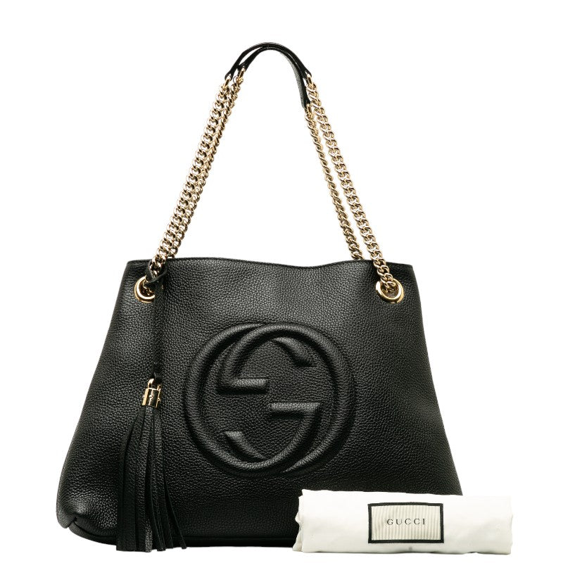 グッチ インターロッキングG ソーホー チェーン ショルダーバッグ トートバッグ 308982 ブラック レザー レディース GUCCI 【中古】