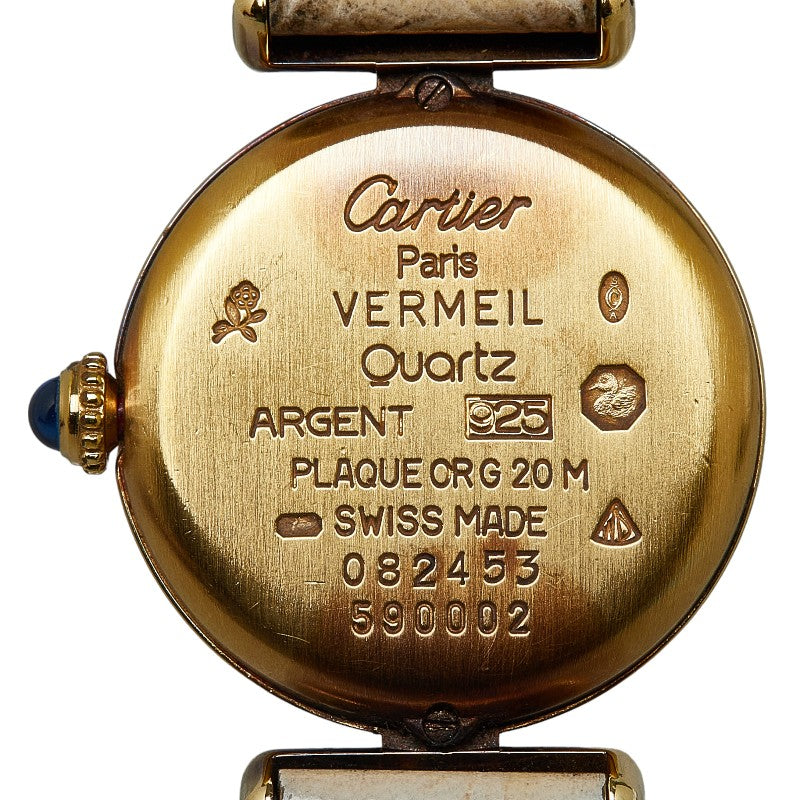 カルティエ マスト コリゼ ヴェルメイユ 腕時計 590002 クオーツ アイボリー文字盤 SV925 シルバー レザー レディース CARTIER 【中古】