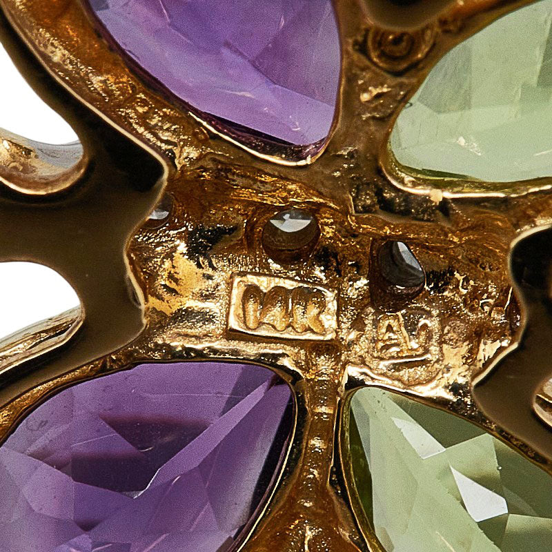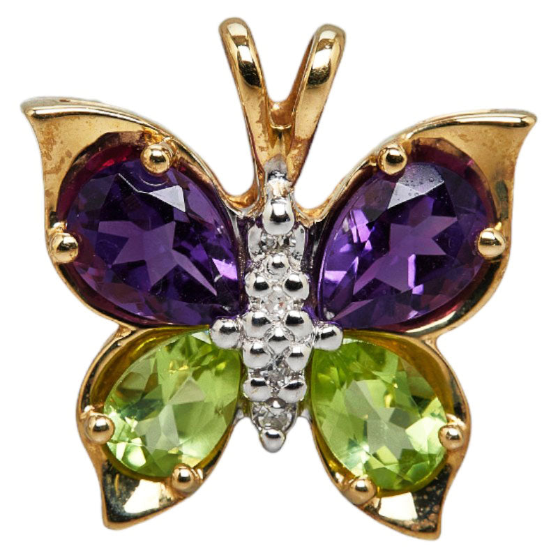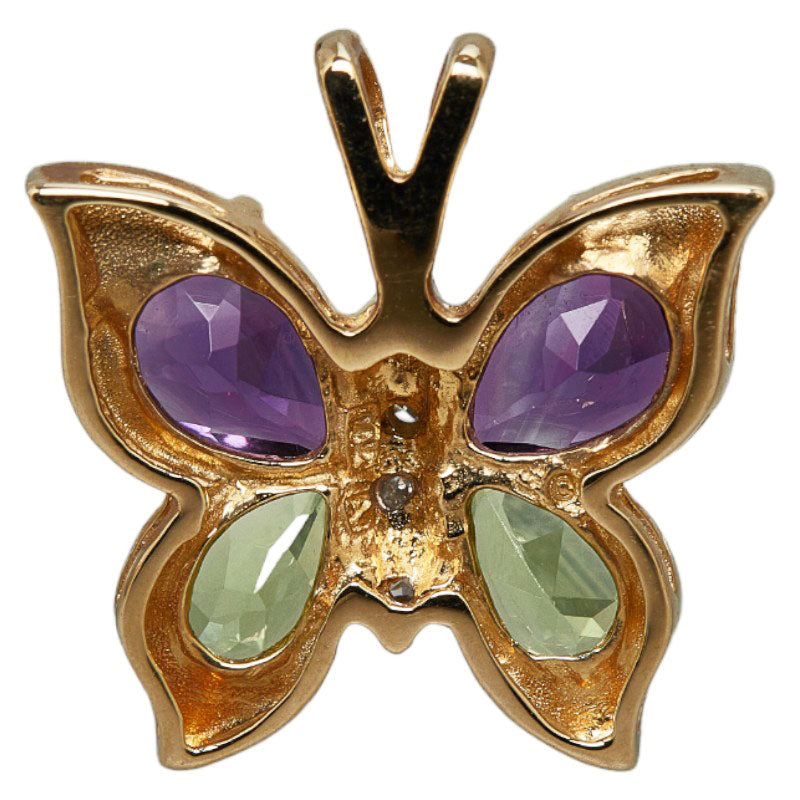ゴールド K14YG イエローゴールド ダイヤ アメジスト ペリドット バタフライ ペンダントトップ レディース 【中古】