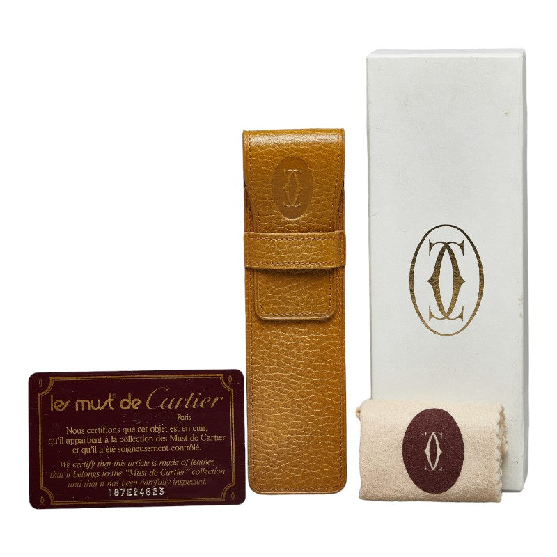 カルティエ ペンケース マスタード イエロー レザー レディース CARTIER 【中古】