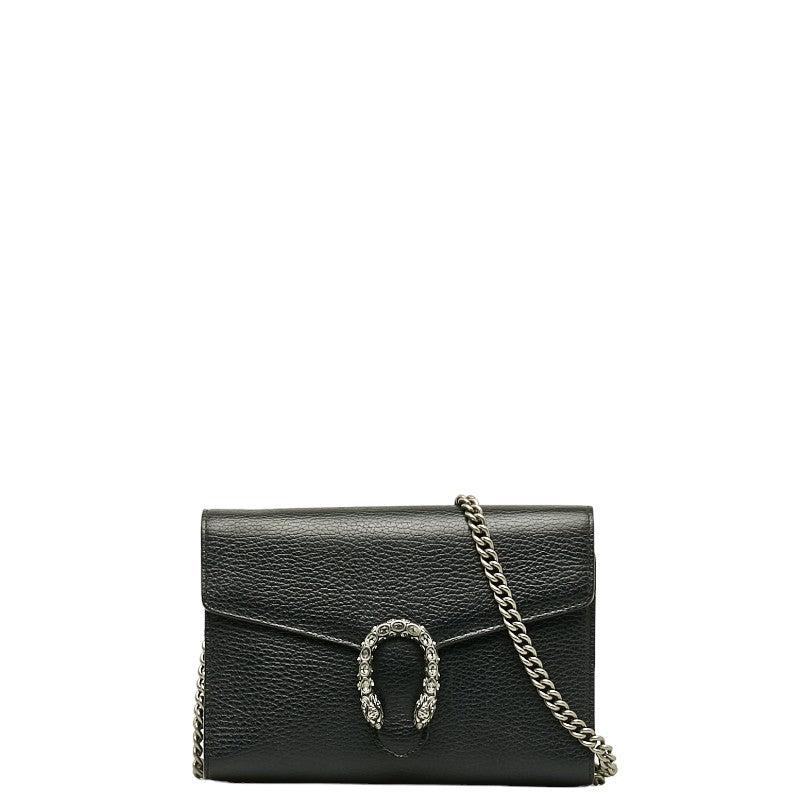 グッチ ディオニュソス 斜め掛け チェーン ショルダーバッグ ウォレット 401231 ブラック レザー レディース GUCCI 【中古】
