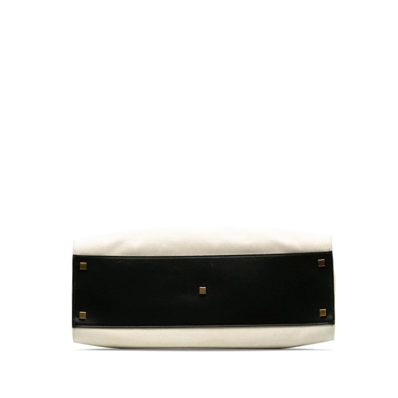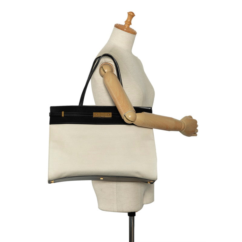 サンローラン トートバッグ ハンドバッグ 553745 ホワイト ブラック キャンバス レザー レディース SAINT LAURENT 【中古】