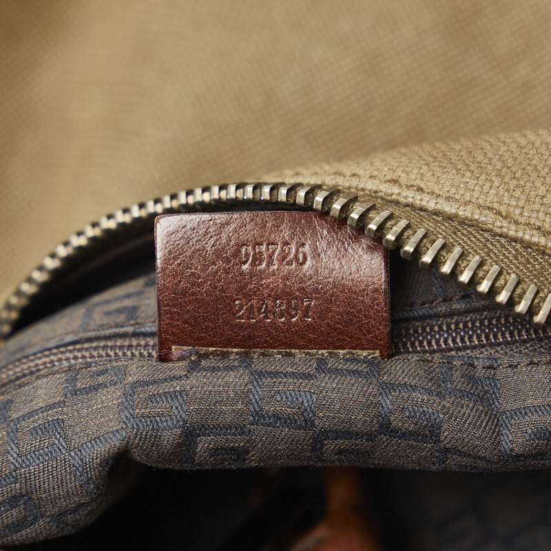 グッチ ワンショルダーバッグ 95726 カーキ ブラウン キャンバス レザー レディース GUCCI 【中古】