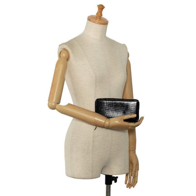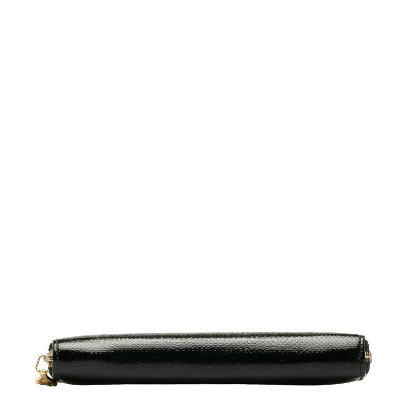 サンローラン レオパード ヒョウ 豹 ラウンドファスナー 長財布 ブラック エナメル レディース SAINT LAURENT 【中古】