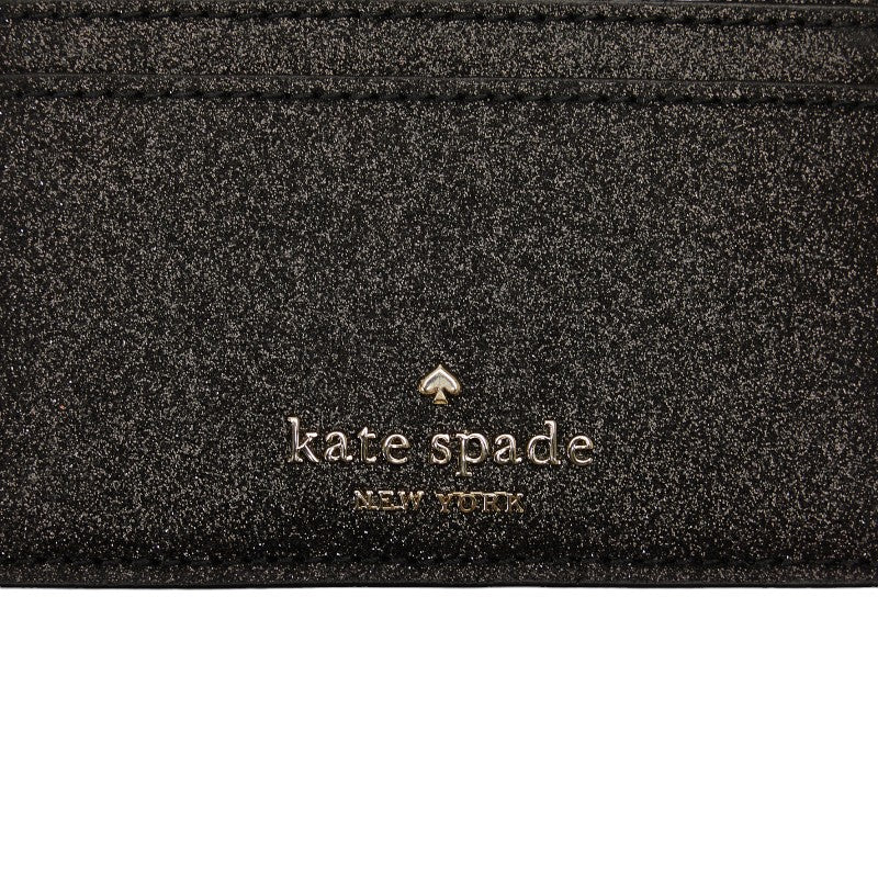 ケイトスペード ティンセル グリッター カードケース パスケース 名刺入れ K9261 ブラック レザー レディース Kate Spade 【中古】