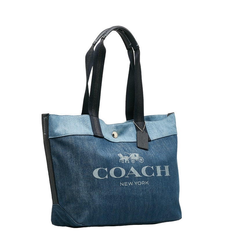コーチ ロゴ トートバッグ 91131 ブルー デニム レディース COACH 【中古】