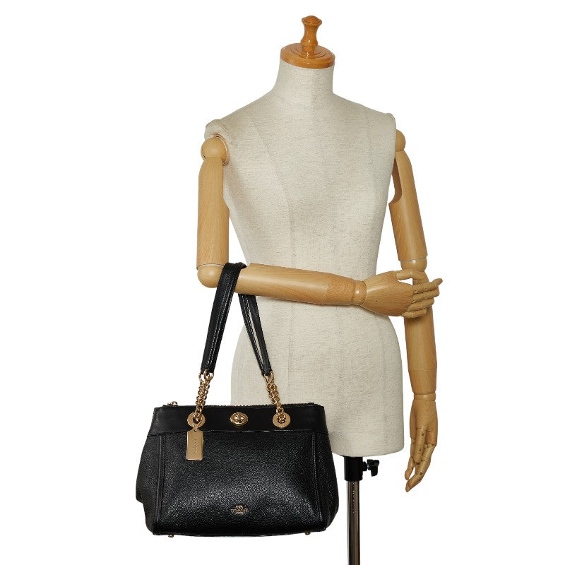 コーチ チェーン ハンドバッグ F87239 ブラック レザー レディース COACH 【中古】