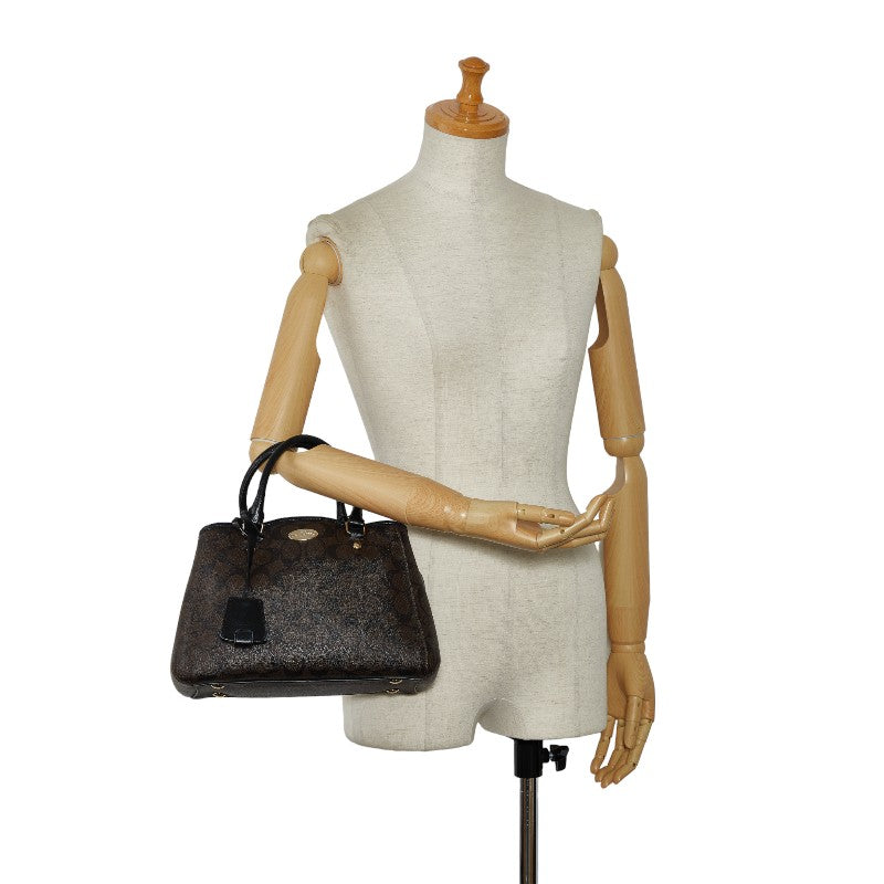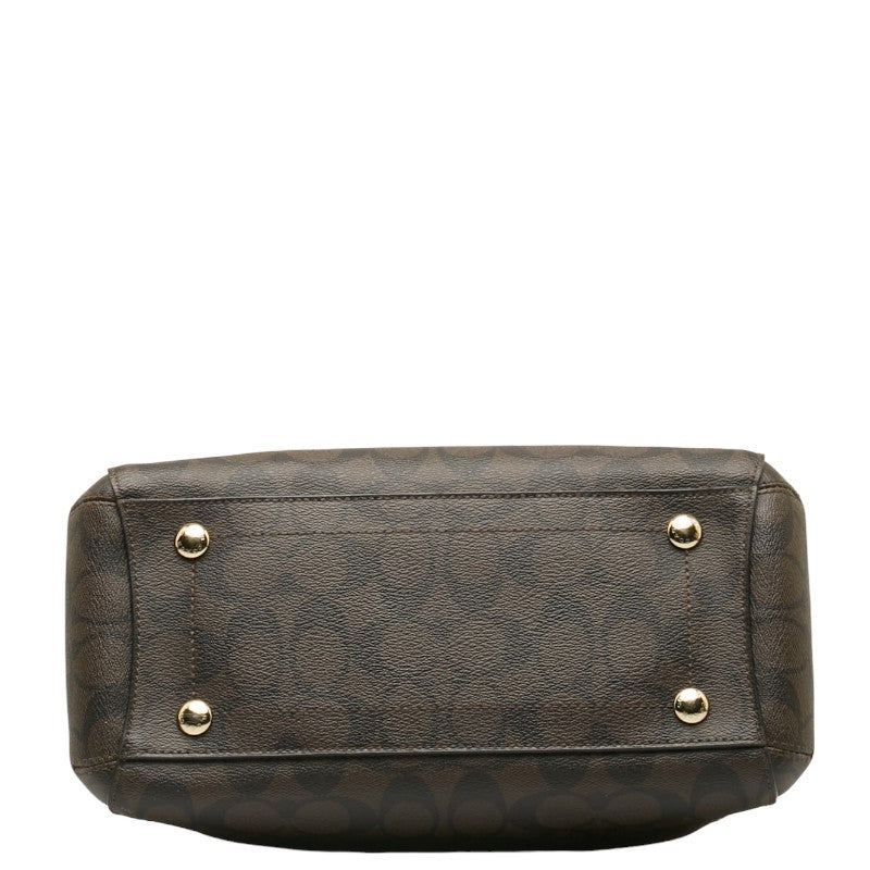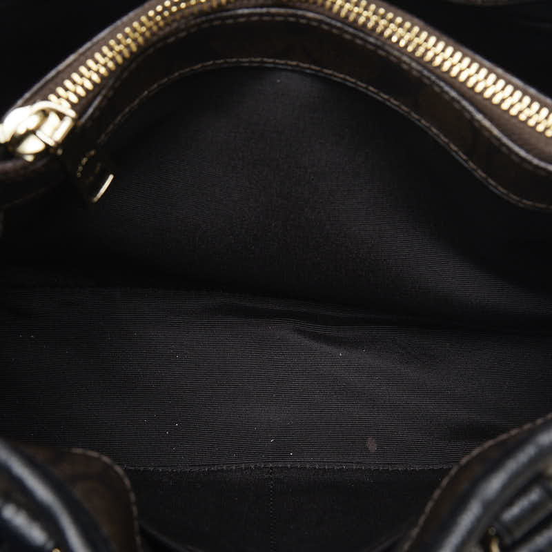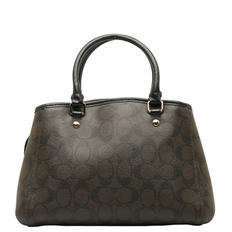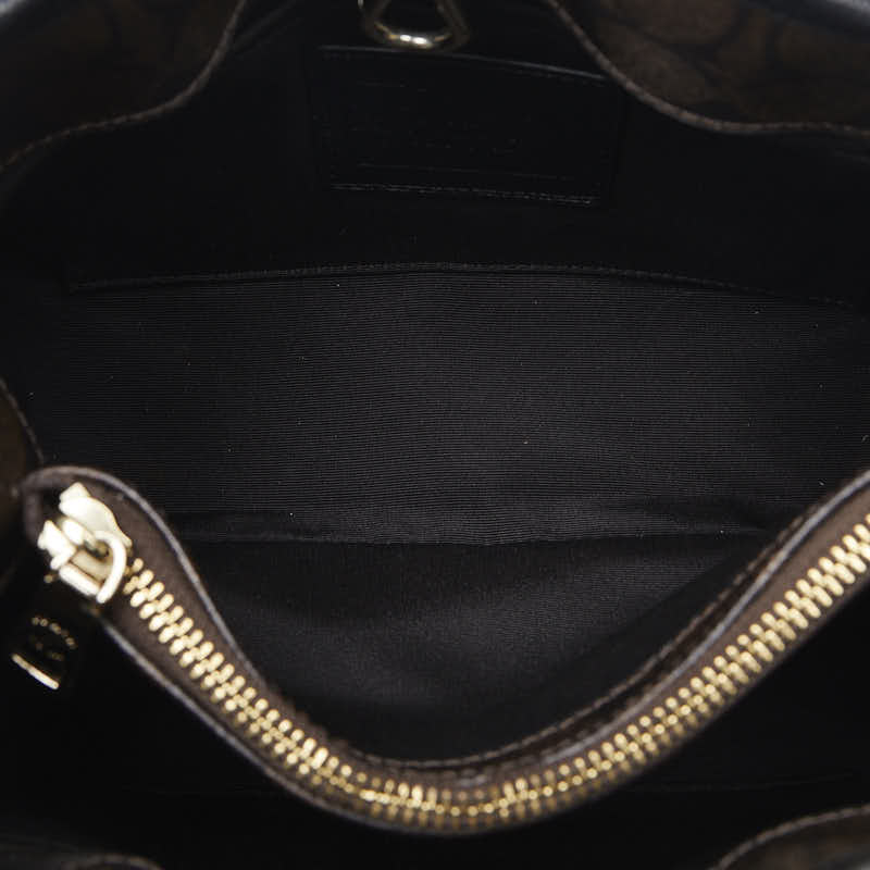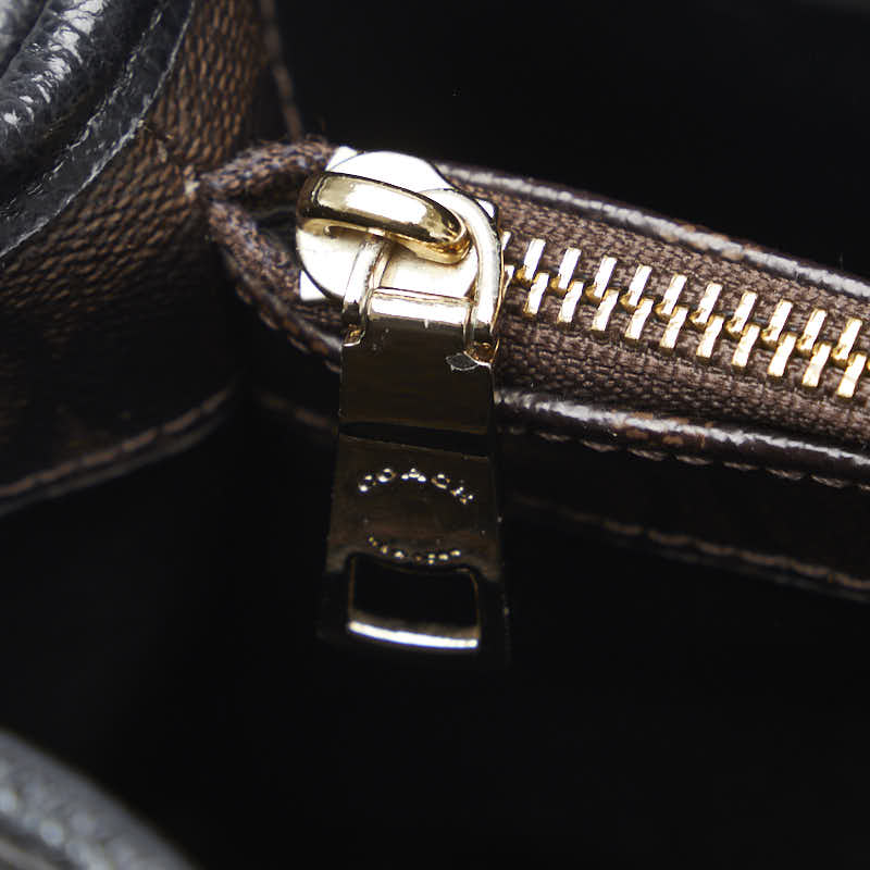 コーチ シグネチャー ハンドバッグ ブラウン ブラック PVC レザー レディース COACH 【中古】
