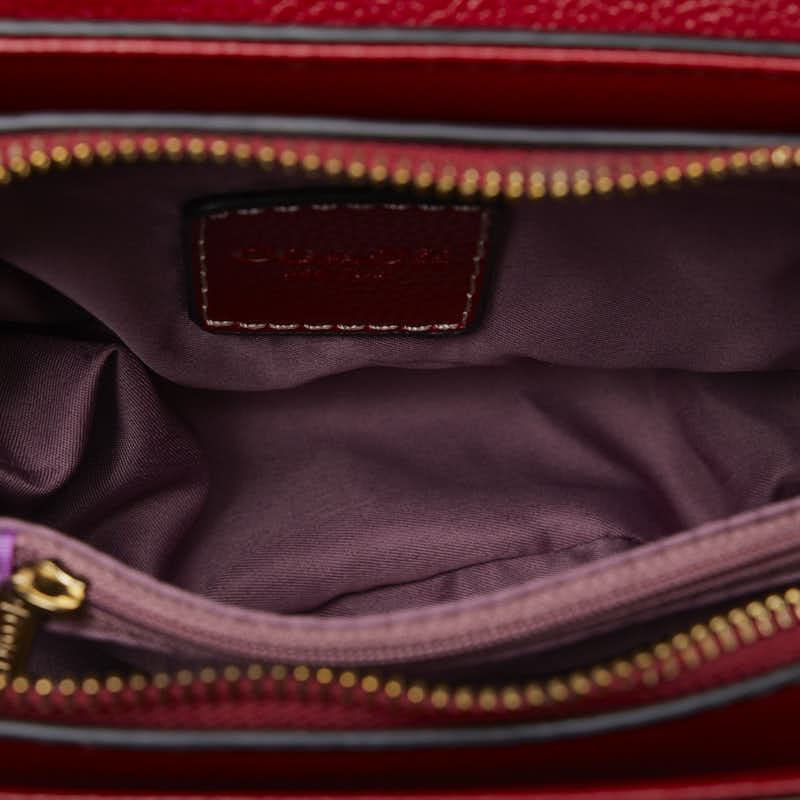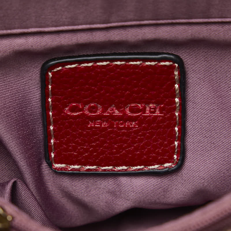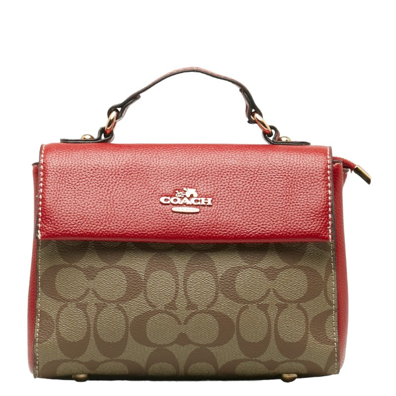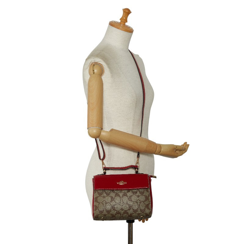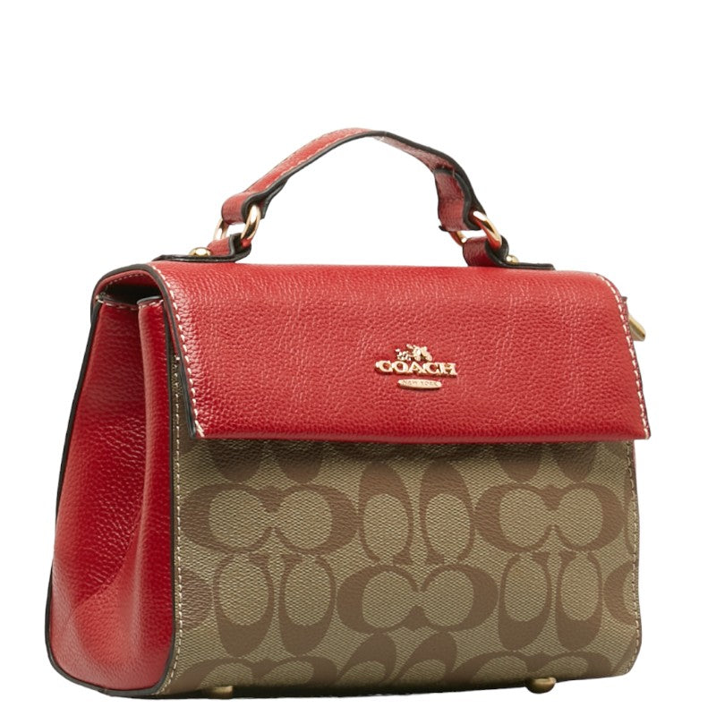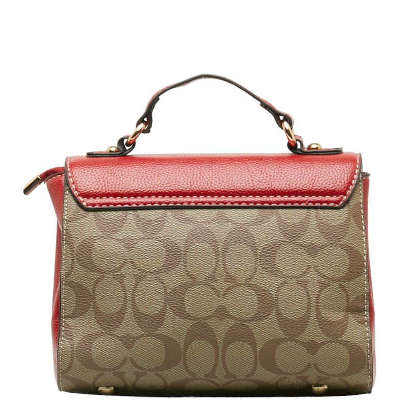 コーチ シグネチャー ミニハンドバッグ ショルダーバッグ 2WAY ベージュ レッド PVC パテントレザー レディース COACH 【中古】