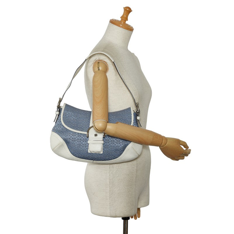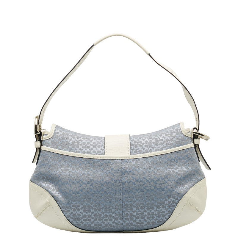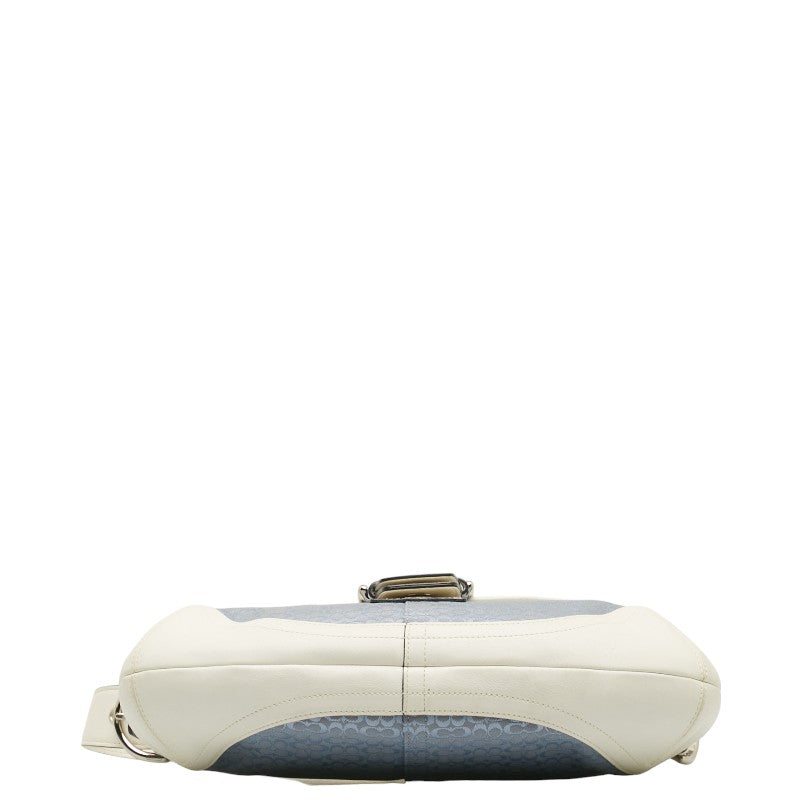 コーチ シグネチャー ショルダーバッグ 6808 ブルー ホワイト キャンバス レザー レディース COACH 【中古】