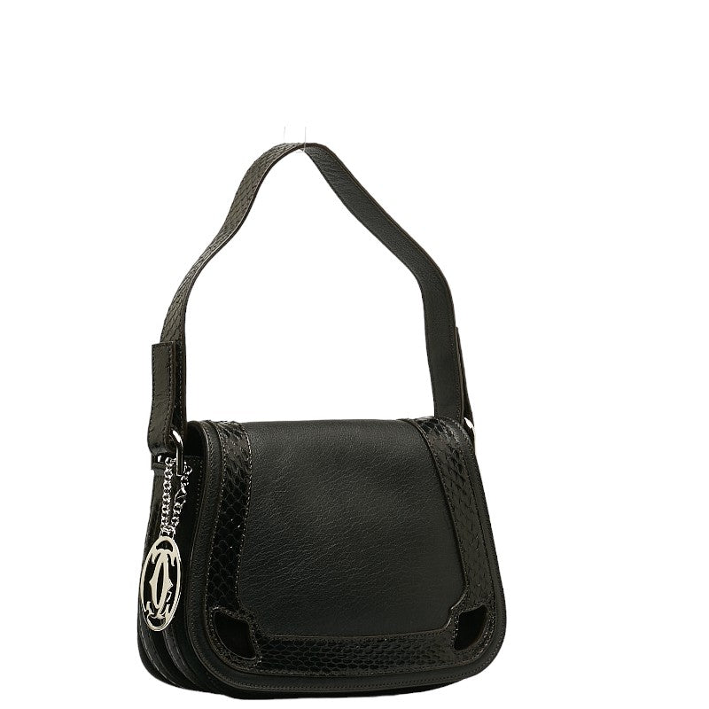 カルティエ ハンドバッグ ショルダーバッグ 2WAY ブラック レザー パイソン スウェード レディース CARTIER 【中古】