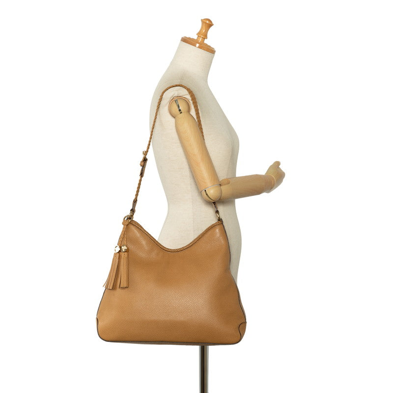 グッチ タッセル 編み込み ワンショルダーバッグ 336659 キャメル ブラウン レザー レディース GUCCI 【中古】
