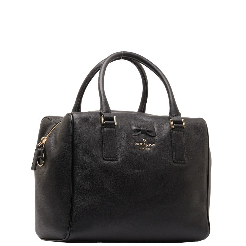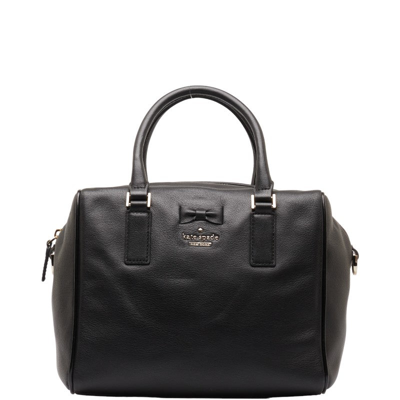 ケイトスペード リボン ロゴ シルバー金具 ハンドバッグ ショルダーバッグ 2WAY ブラック レザー レディース Kate Spade 【中古】