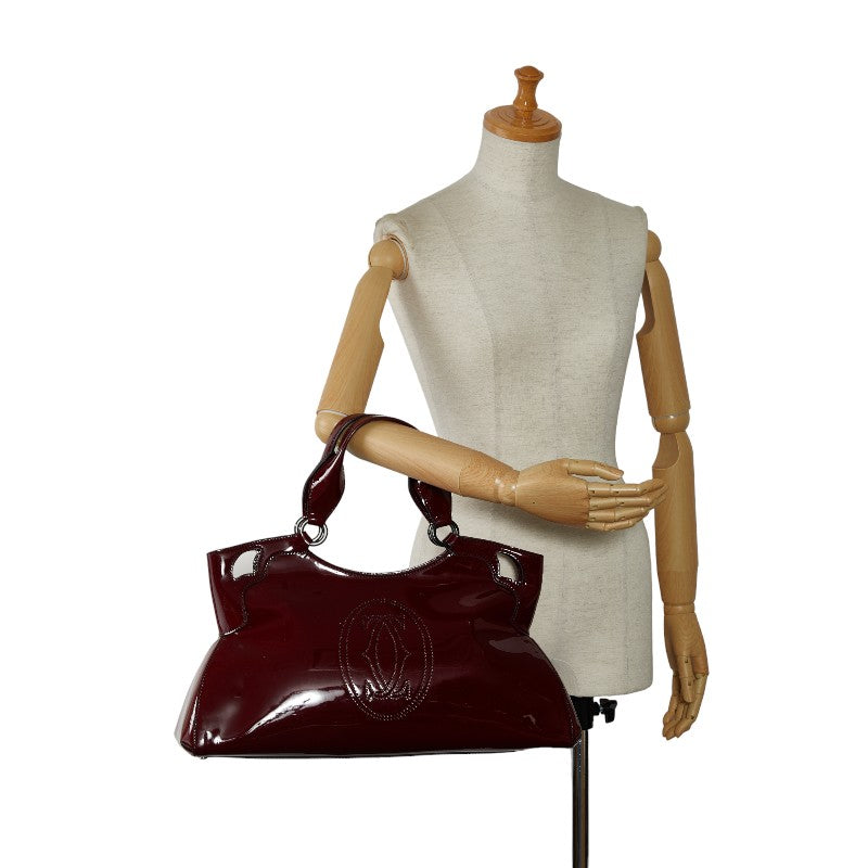 カルティエ マストライン マルチェロ ドゥ ハンドバッグ ワインレッド エナメル レディース CARTIER 【中古】