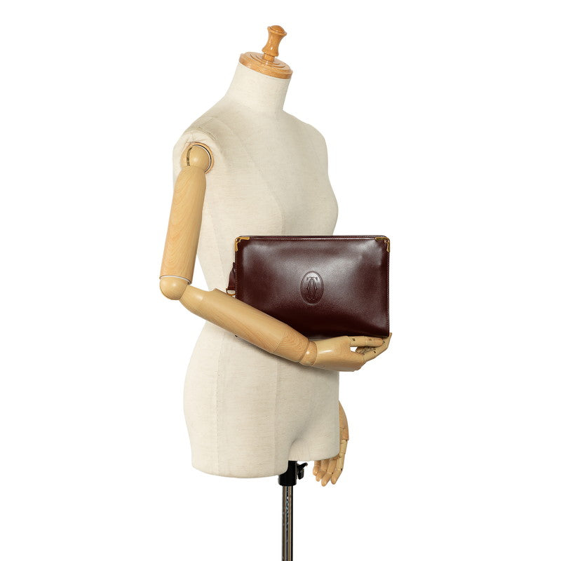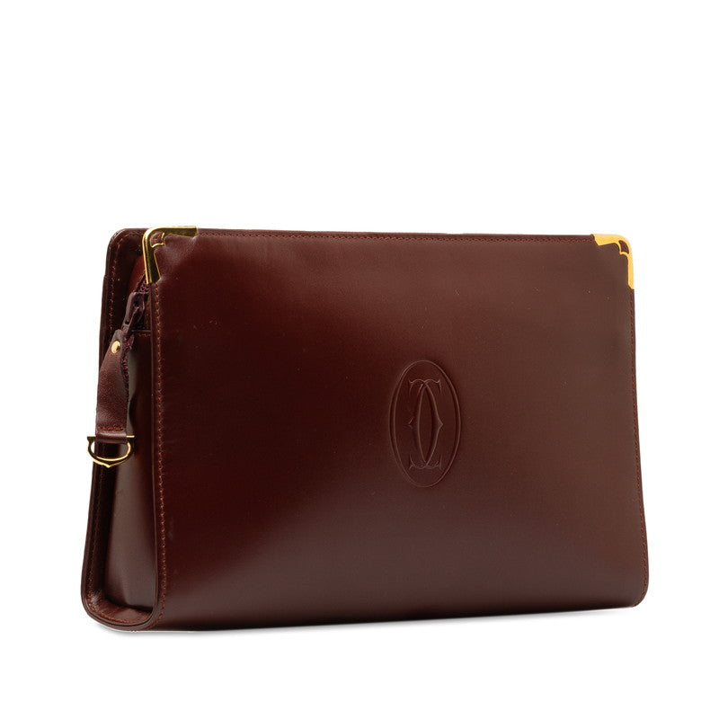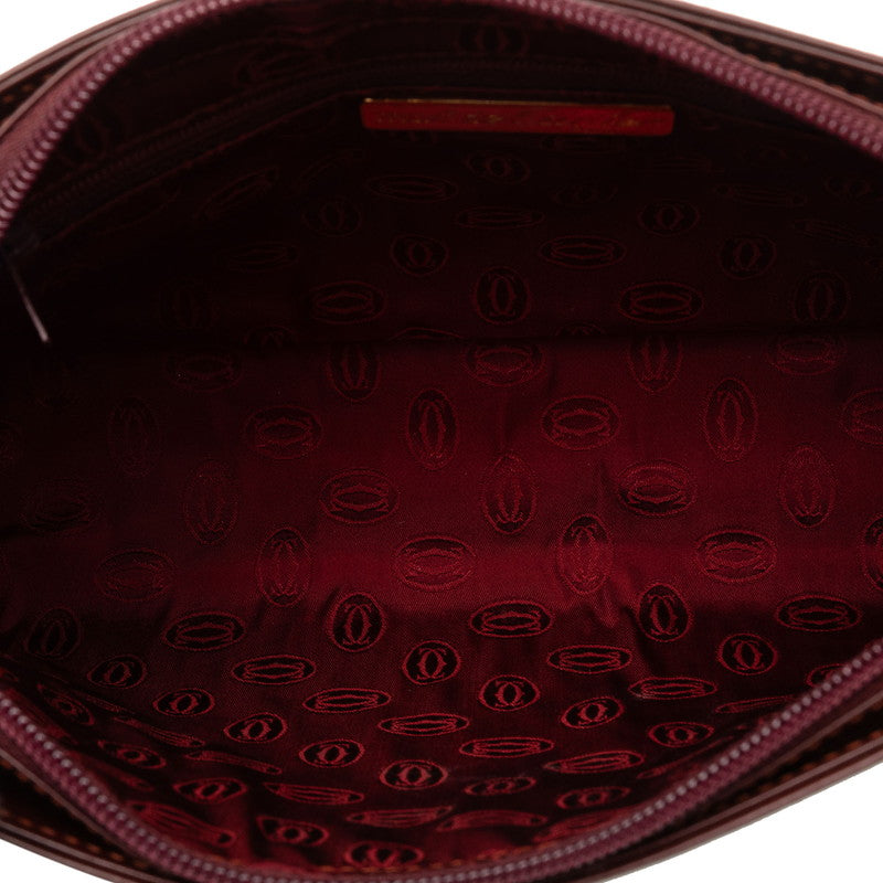 カルティエ マストライン クラッチバッグ ワインレッド ボルドー レザー レディース CARTIER 【中古】