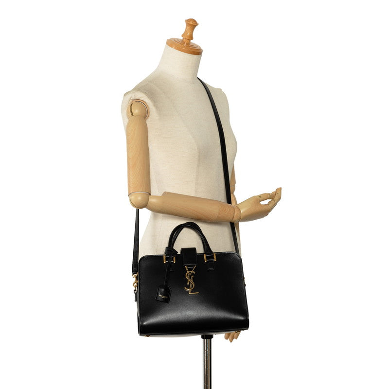 サンローラン モノグラム ベイビーカバス ハンドバッグ ショルダーバッグ 2WAY 568853 ブラック レザー レディース SAINT LAURENT 【中古】
