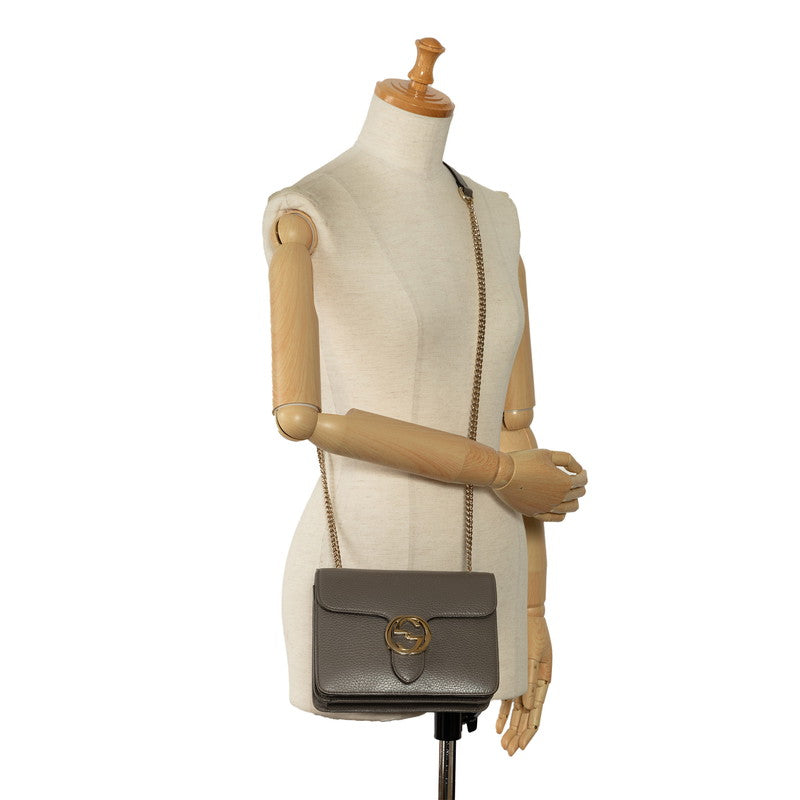 グッチ インターロッキングG チェーン ショルダーバッグ 510304 グレー レザー レディース GUCCI 【中古】