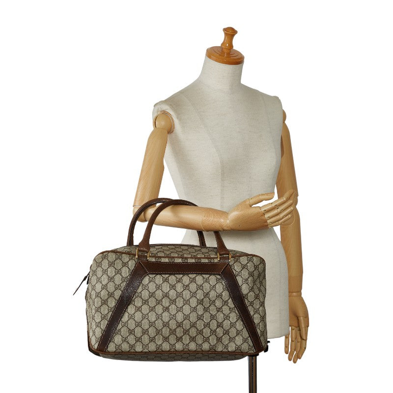 グッチ GGスプリーム ボストンバッグ トラベルバッグ 旅行用バッグ ベージュ ブラウン PVC レザー レディース GUCCI 【中古】